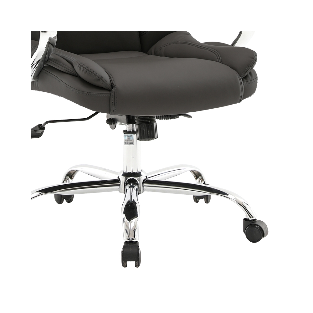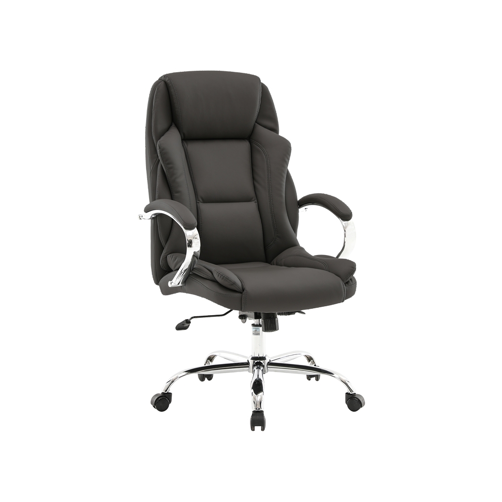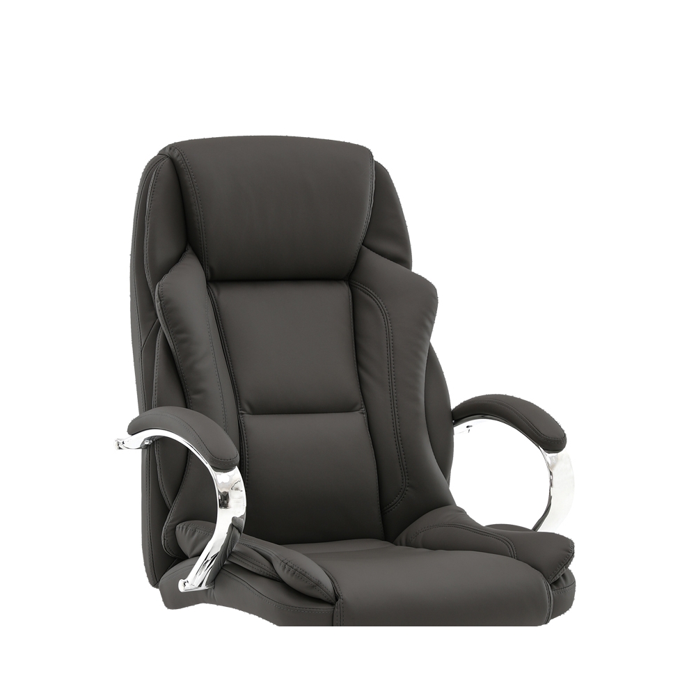 Τεχνικές προδιαγραφές: * Μηχανισμός Tilt / Ανακλινόμενη πλάτη: Το κάθισμα ακολουθεί την κλίση του σώματος μπρος – πίσω, προσφέροντας πλήρη ελευθερία κινήσεων, αλλά και εργονομική στήριξη της μέσης και της σπονδυλικής στήλης. Ο μηχανισμός μπορεί να ασφαλίσει στην κάθετη στάση. * Ρυθμιζόμενο ύψος: Δυνατότητα να προσαρμόζεται και να “κλειδώνει” το κάθισμα στην κατάλληλη εργονομική θέση, ανάλογα με το ύψος του χρήστη. Σύμφωνα με την εργονομία τα πόδια πρέπει να σχηματίζουν ορθή γωνία 90 μοιρών με το πάτωμα. * Ανθεκτικός σκελετός: Έδραση σε τροχήλατη πεντακτινωτή PP βάση υψηλών αντοχών. Δυνατότητα εύκολης περιστροφής και μετακίνησης προς κάθε κατεύθυνση. * Τεχνόδερμα Pu: Επένδυση με τεχνόδερμα υψηλής ποιότητας που παρέχει ανθεκτικότητα στον χρόνο αλλά και την δυνατότητα του εύκολου καθαρισμού. Προσφέρεται σε μαύρο χρώμα. * Σχεδιασμός ψηλής πλάτης που ακολουθεί την σπονδυλική στήλη για μεγαλύτερη ανατομία. Τα ενισχυμένα μαξιλάρια προσφέρουν μία εξτρά αίσθηση πολυτέλειας. * Καμπύλο μπράτσο που ακολουθεί την κλίση των χεριών, ενισχυμένο με τεχνόδερμα για μεγαλύτερη άνεση. Το μπράτσο μπορεί να ανακλιθεί όρθριο,ώστε το κάθισμα να πλησιάζει περισσότερο το γραφείο όταν δεν χρησιμοποιείται. * Ενισχυμένη μπουκάλα στήριξης.