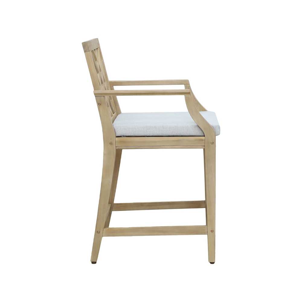 Σκαμπό μπαρ Amalfi pakoworld μασίφ ξύλο ακακίας-μπεζ ύφασμα 59x63.5x104.9εκ