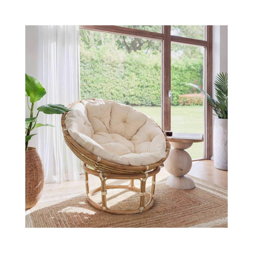 Τεχνικά χαρακτηριστικά: * Κατασκευή από cane εξαιρετικής ποιότητας με μεγάλη αντοχή σε φθορά, χρόνο και χρήση. Tο "cane" αναφέρεται συνήθως στο υλικό που προέρχεται από το φυτό "rattan" (ρατάν), το οποίο είναι ένας τύπος φυτού που ανήκει στην οικογένεια των palm. Το ρατάν είναι γνωστό για την ευκαμψία και την ανθεκτικότητά του και χρησιμοποιείται ευρέως στην κατασκευή επίπλων και διακοσμητικών αντικειμένων. Το cane είναι ελαφρύ, ανθεκτικό και ευέλικτο, κάνοντάς το κατάλληλο για διάφορες εφαρμογές. Επίσης, προσφέρει μια φυσική και οργανική αισθητική σε κάθε προϊόν που κατασκευάζεται με αυτό. Είναι δημοφιλές λόγω της φυσικής του εμφάνισης και της δυνατότητάς του να προσθέσει έναν αέρα φυσικής γοητείας στον χώρο. * Διαθέτει και μαξιλάρι για πολύ άνετο κάθισμα. * Προσφέρεται σε χρώμα φυσικό.