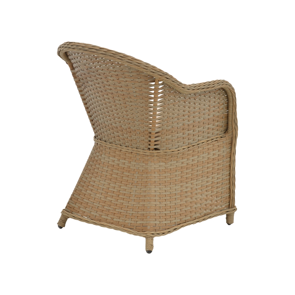 * Κατασκευή από rattan και textilene. Το ρατάν (rattan) είναι ένας φυσικός υλικός που προέρχεται από τον κορμό ορισμένων ειδών φυτών, κυρίως από την οικογένεια των palm. Χρησιμοποιείται ευρέως στην κατασκευή επίπλων και διακοσμητικών αντικειμένων λόγω της φυσικής του ομορφιάς και ανθεκτικότητας. Το ρατάν είναι ελαφρύ, ευέλικτο και ανθεκτικό στις καιρικές συνθήκες, καθιστώντας το ιδανικό για χρήση σε εξωτερικούς χώρους. Επίσης, έχει φυσική θερμομόνωση, καθιστώντας το άνετο στη χρήση ακόμα και σε ζεστά κλίματα. Το Textilene είναι ένα υλικό που συχνά χρησιμοποιείται στην κατασκευή εξωτερικών επίπλων και αξεσουάρ, κυρίως για εξωτερικούς χώρους όπως αίθρια, μπαλκόνια και κήπους. Είναι ένα υλικό που παρέχει αντοχή στις καιρικές συνθήκες και είναι εύκολο στη φροντίδα. Το Textilene κατασκευάζεται από ίνες πολυεστέρα ή πολυπροπυλενίου που είναι υφασμένες μεταξύ τους για να δημιουργήσουν ένα διάτρητο ύφασμα με μικρά άνοιγματα. Αυτή η διάτρητη κατασκευή επιτρέπει στον αέρα να κυκλοφορεί ελεύθερα μέσα από το ύφασμα, ενώ ταυτόχρονα παρέχει αντοχή και αντίσταση στην υγρασία και τον ήλιο.