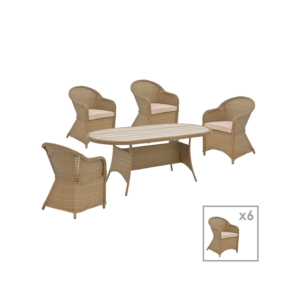 Το σετ αποτελείται από έξι πολυθρόνες και ένα τραπέζι:
