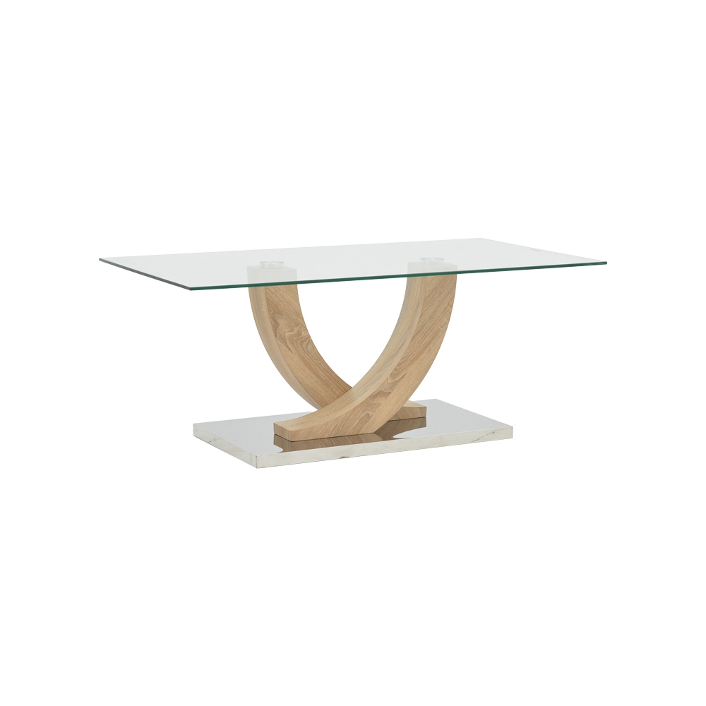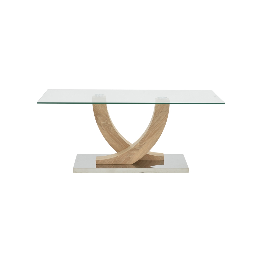 Τραπέζι σαλονιού Kasmora pakoworld φυσικό ξύλο-γυαλί 110x60x45εκ Pakoworld 029-000238