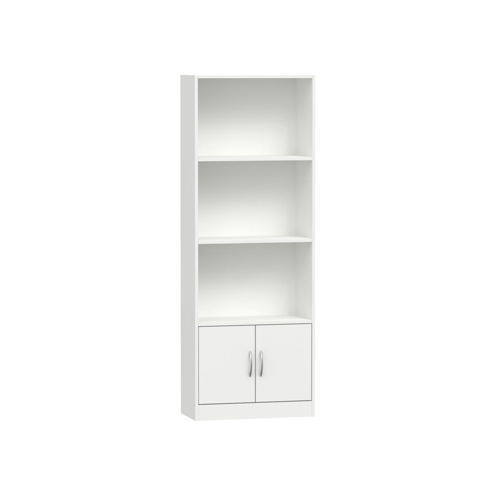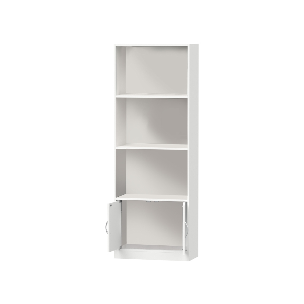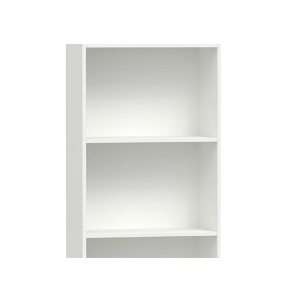 Τεχνικά χαρακτηριστικά: * Σταθερός σκελετός και ράφια από υψηλής ποιότητας μοριοσανίδα με επένδυση μελαμίνης με αντοχή στη φθορά και στο χρόνο. Η μοριοσανίδα, γνωστή ως chipboard, είναι ένα σύνθετο ξύλινο υλικό που κατασκευάζεται από μικρά κομματάκια ξύλου, συνήθως πεύκου ή ελάτης, κολλημένα μαζί υπό υψηλή πίεση και θερμοκρασία με τη χρήση ρητινών. Χρησιμοποιείται ευρέως στην κατασκευή επίπλων, εσωτερικών επιφανειών και δομικών εφαρμογών. Κατασκευάζεται από ανακυκλωμένα υλικά και είναι ανθεκτική σε καμπύλες, τριβές και άλλες φυσικές καταπονήσεις. * Περιλαμβάνει τρία ράφια ανοιχτής αποθήκευσης βιβλίων και άλλων αντικειμένων της καθημερινότητας σας. * Περιλαμβάνει ντουλάπι στο κάτω μέρος της για την κλειστή αποθήκευση των αντικειμένων σας. * Προσφέρεται σε χρώμα λευκό.