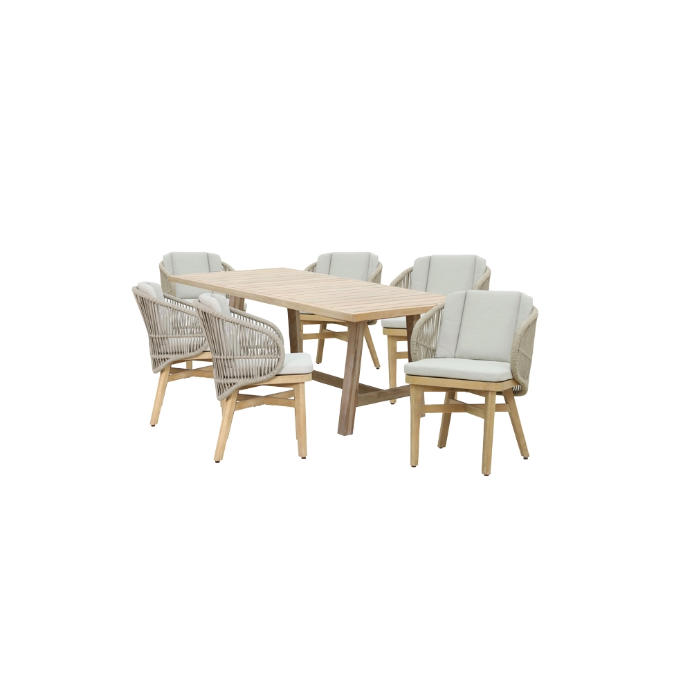Τραπεζαρία Poza-Farem pakoworld 7τμχ μασίφ ξύλο ακακίας-ευκαλύπτου-μπεζ ύφασμαΗ τραπεζαρία Poza-Farem αποτελείται από έξι καρέκλες και ένα τραπέζι. Πρόκειται για ένα εξαιρετικό σύνολο το οποίο θα διακοσμήσει τον εξωτερικό σας χώρο. Κατασκευασμένη από μεγάλης ανθεκτικότητας υλικά και ξύλα ήρθε για να εντυπωσιάσει. Μπορεί να χρησιμοποιηθεί για οικιακή και επαγγελματική χρήση.