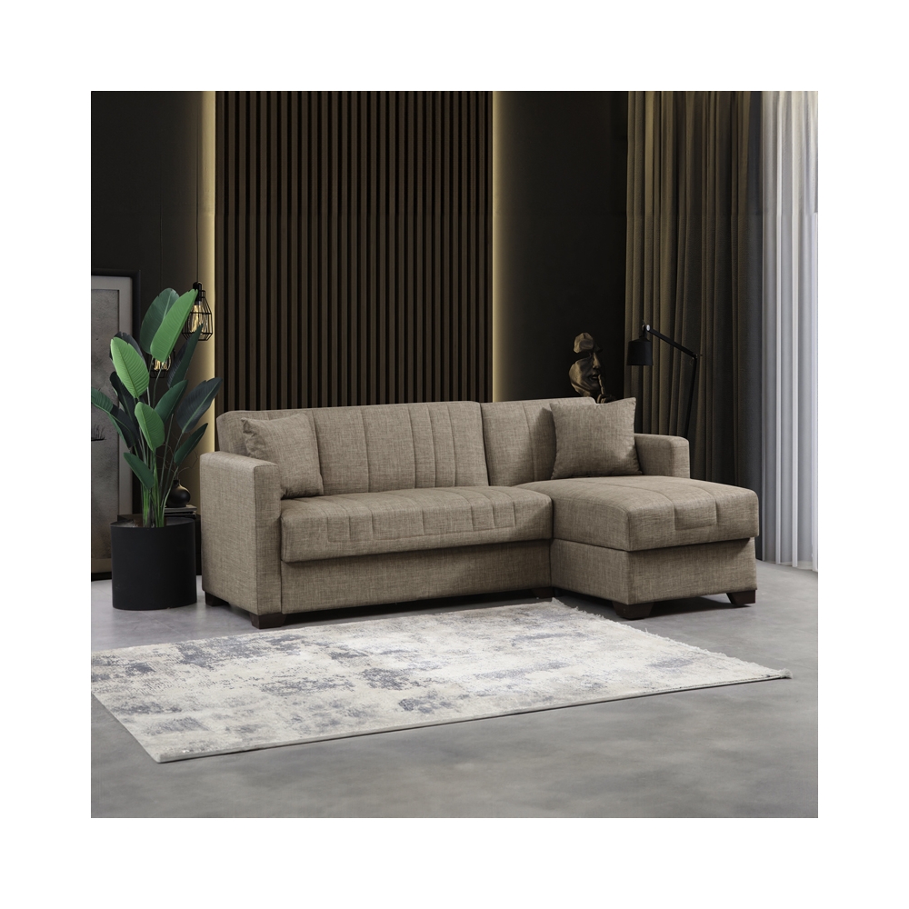 Γωνιακός καναπές-κρεβάτι με αποθηκευτικό χώρο Alaska pakoworld καφέ ύφασμα 204x143x83εκ