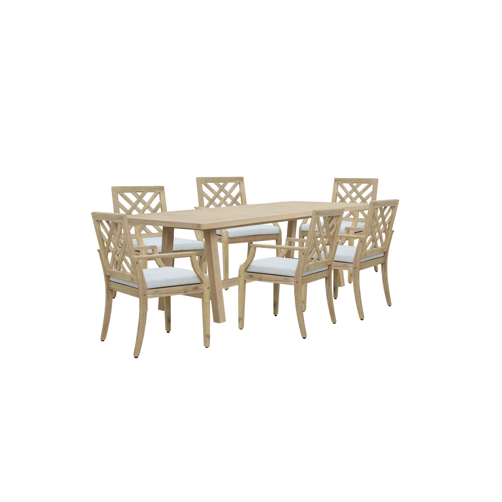 Τραπεζαρία Poza-Bolen pakoworld 7τμχ μασίφ ξύλο ακακίας-μπεζ ύφασμα