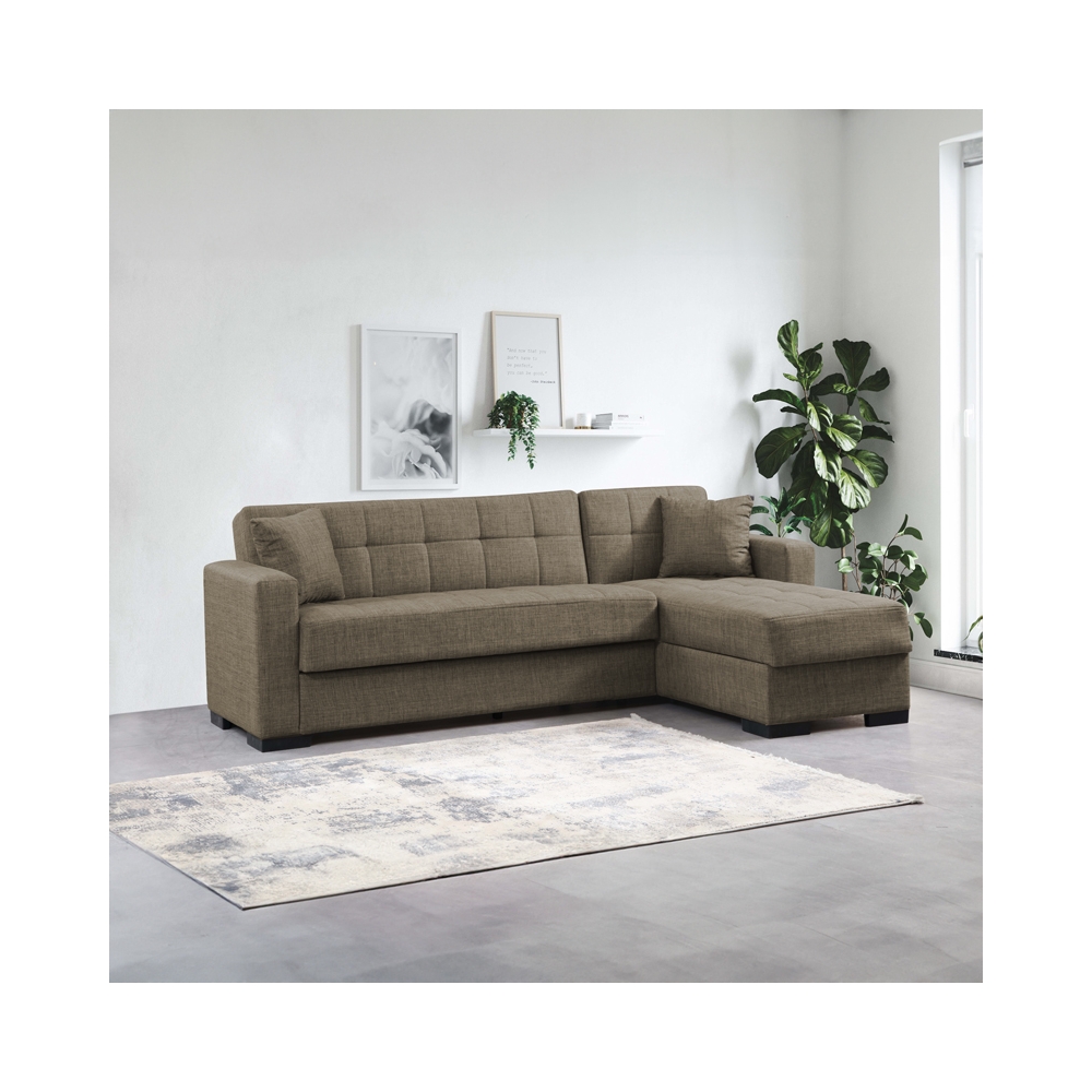 Γωνιακός καναπές-κρεβάτι με αποθηκευτικό χώρο Kansas pakoworld καφέ ύφασμα 235x150x80εκ