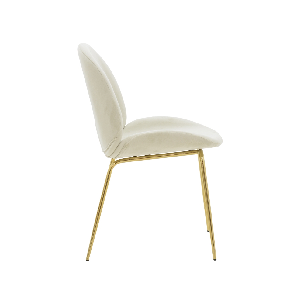 Τεχνικά χαρακτηριστικά: * Σκελετός κατασκευασμένος από ενισχυμένο μέταλλο εξαιρετικής ποιότητας με μεγάλη αντοχή σε φθορά, χρόνο και χρήση. * Πλάτη και έδρα επενδυμένες με βελούδο ύφασμα ασυναγώνιστης ποιότητας. Το βελούδο είναι ένα ύφασμα με κοντές, πυκνές ίνες, συνήθως από μετάξι, βαμβάκι ή συνθετικά υλικά. Έχει μια απαλή, λεία υφή και μια πλούσια, γυαλιστερή εμφάνιση. Χαρακτηρίζεται για την πυκνότητα του και την απαλότητά του. * Προσφέρεται σε χρώμα ιβουάρ-χρυσό.