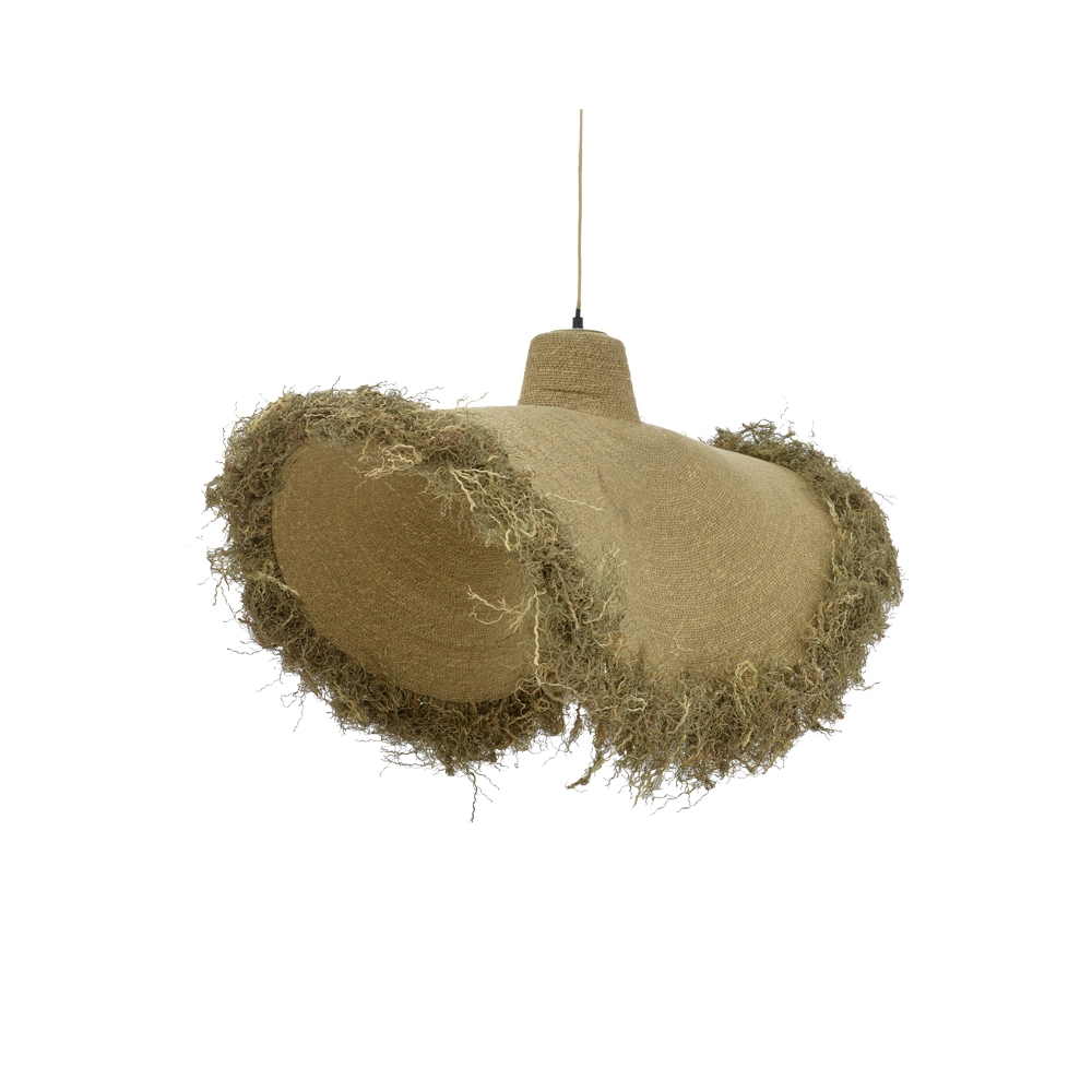 Τεχνικά χαρακτηριστικά: * Κατασκευή από μέταλλο και γιούτα.Η γιούτα είναι μια από τις πιο προσιτές φυσικές ίνες και δεύτερη μετά το βαμβάκι στην ποσότητα που παράγεται και στην ποικιλία της χρηστικότητάς του. Οι ίνες από γιούτα αποτελούνται κυρίως από φυτικά υλικά κυτταρίνη και λιγνίνη. Η γιούτα ονομάζεται επίσης “χρυσή ίνα” για το χρώμα και την μεγάλη αντοχή της. * Ο σχεδιασμός του καπέλου επιτρέπει στο φως να διαχέεται εκπληκτικά όταν το φωτιστικό είναι σε λειτουργία. * Φέρει θέση για έναν λαμπτήρα Ε27 ο οποίος δεν συμπεριλαμβάνεται στη συσκευασία. *Μέγιστη κατανάλωση 10 Watt * Προσφέρεται σε χρώμα φυσικό