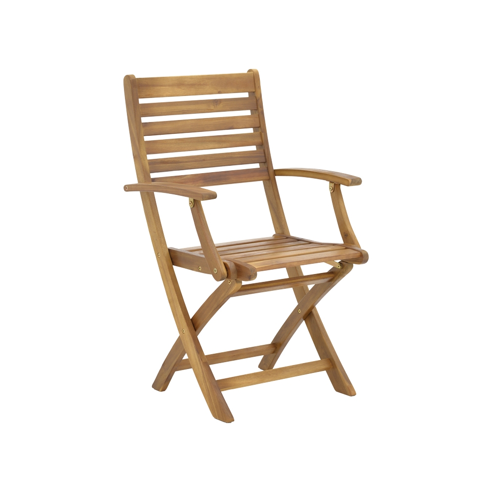 Τεχνικά χαρακτηριστικά: * Κατασκευή από ξύλο ακακίας. Η ακακία είναι γνωστή για την αντοχή της και την ιδιαίτερη αισθητική της, κάνοντας τον σκελετό αυτόν ιδανικό για χρήση σε εξωτερικούς χώρους, όπως κήπους, βεράντες ή αυλές. Τα λεία φυσικά ξύλινα φινιρίσματα του αναδεικνύουν τις φυσικές γραμμές και την υφή του ξύλου, προσφέροντας μια αίσθηση αυθεντικότητας και ευχάριστης απλότητας. * Πτυσσόμενο κάθισμα: Η καρέκλα αναδιπλώνει και κλείνει με μία κίνηση προσφέροντας έτσι ευκολία στη μεταφορά και την αποθήκευση. * Φέρει μπράτσα για την ξεκούραση των χεριών. * Προσφέρεται σε χρώμα φυσικό.