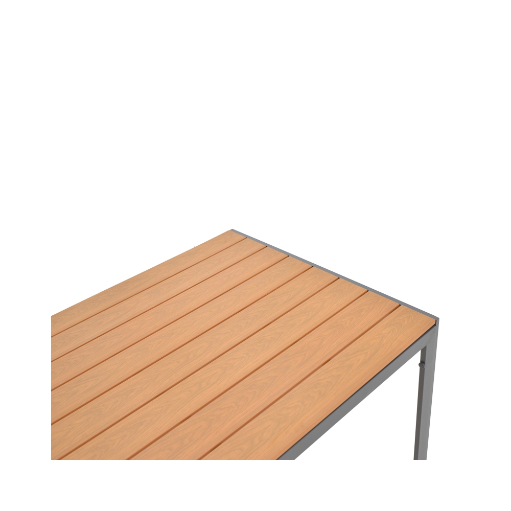 Τεχνικά χαρακτηριστικά: * Σκελετός από εξαιρετικά ανθεκτικό αλουμίνιο με αντοχή στη φθορά και στο χρόνο. * Κυρίως επιφάνεια τραπεζιού από υψηλής ποιότητας plywood - κόντρα πλακέ που προσδίδει ανθεκτικότητα αλλά και αντοχή στις συνθήκες του εξωτερικού περιβάλλοντος (ηλιακή ακτινοβολία, υγρασία). Το plywood είναι ένα σύνθετο υλικό που μοιάζει με ξύλο, κατασκευασμένο από ανακυκλωμένα πλαστικά. Χρησιμοποιείται συνήθως για την κατασκευή εξωτερικών επίπλων, όπως τραπέζια, καρέκλες, ξαπλώστρες και παγκάκια. Είναι εξαιρετικά ανθεκτικό στις καιρικές συνθήκες. * Προσφέρεται σε χρώμα ανθρακί - φυσικό.