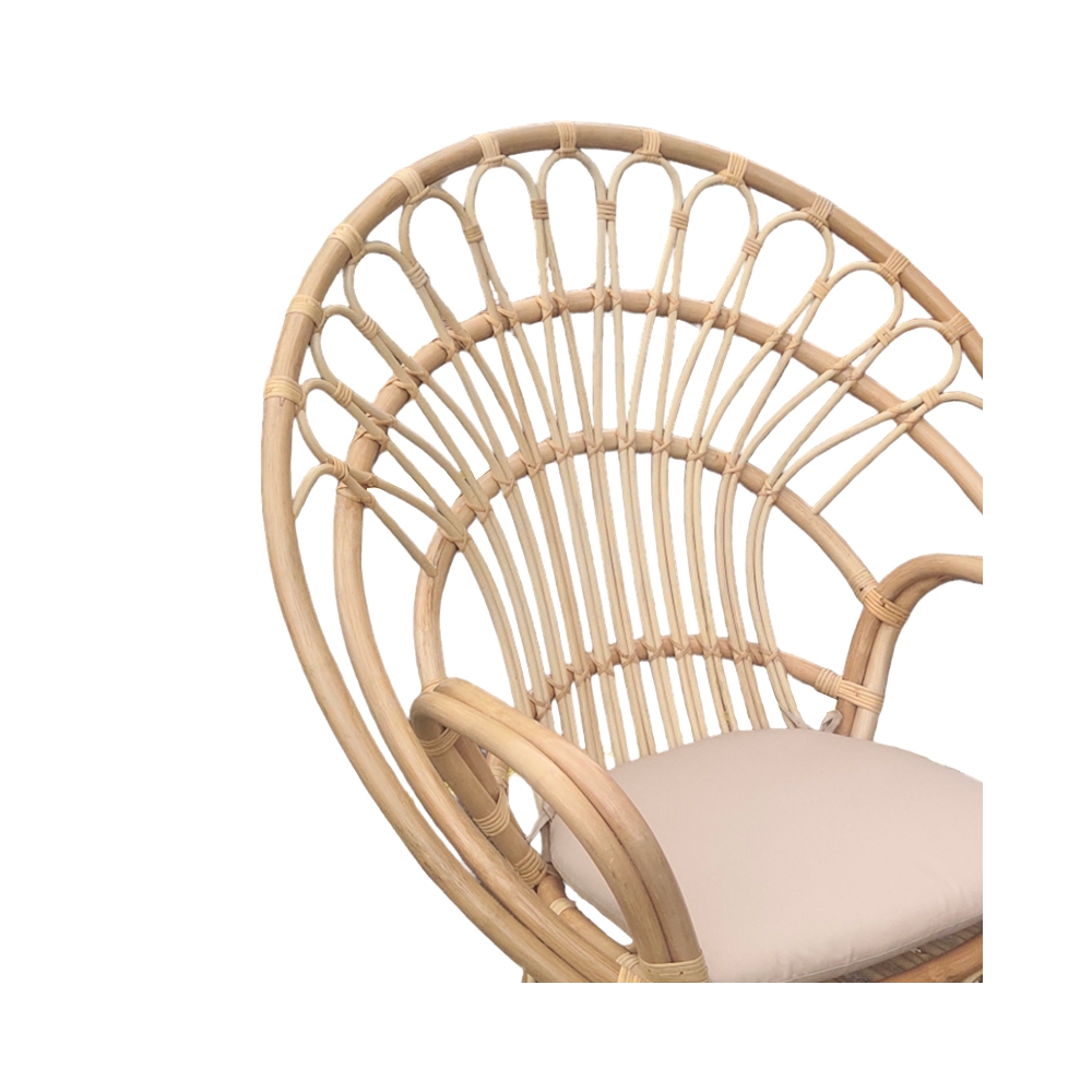 Τεχνικά χαρακτηριστικά: *Κατασκευασμένη από rattan. Το ρατάν είναι ένα φυσικό υλικό που προέρχεται από την εσωτερική φλοιώδη βλάστηση ορισμένων ειδών φυτών, κυρίως από την Ασία. Το ρατάν είναι ελαφρύ, ευέλικτο και ανθεκτικό στις καιρικές συνθήκες, καθιστώντας το ιδανικό για χρήση σε εσωτερικούς αλλά και σε εξωτερικούς χώρους. Επίσης, έχει φυσική ομορφιά και προσφέρει μια φυσική εμφάνιση στα έπιπλα. * Φέρει μπράτσα για την ξεκούραση των χεριών. * Διαθέτει μαξιλάρι σε μπεζ χρώμα. * Προσφέρεται σε χρώμα φυσικό.