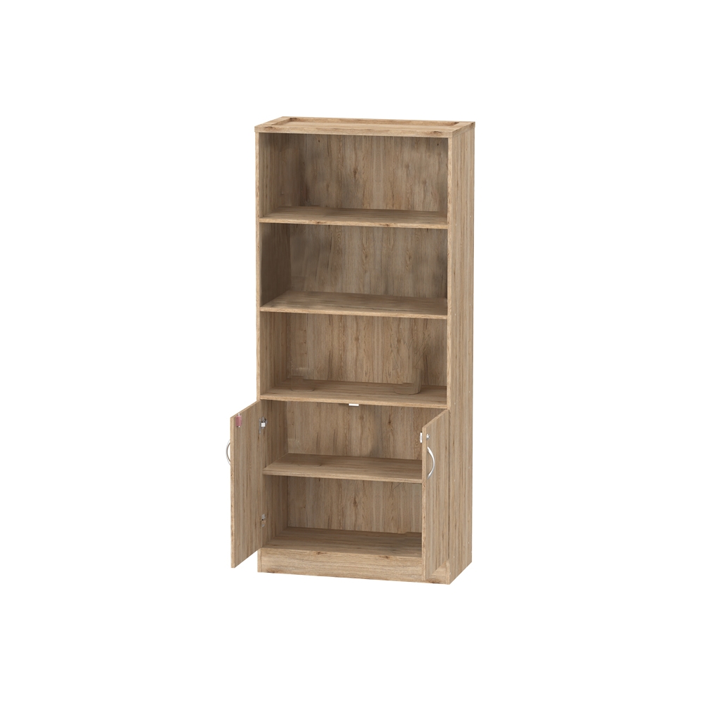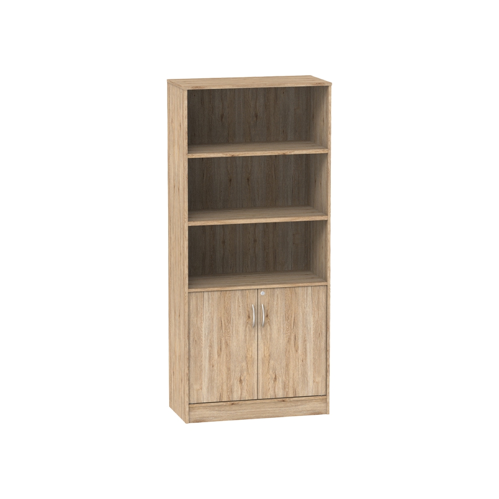 Τεχνικά χαρακτηριστικά: * Σταθερός σκελετός και ράφια από υψηλής ποιότητας μοριοσανίδα με επένδυση μελαμίνης με αντοχή στη φθορά και στο χρόνο. Η μοριοσανίδα, γνωστή ως chipboard, είναι ένα σύνθετο ξύλινο υλικό που κατασκευάζεται από μικρά κομματάκια ξύλου, συνήθως πεύκου ή ελάτης, κολλημένα μαζί υπό υψηλή πίεση και θερμοκρασία με τη χρήση ρητινών. Χρησιμοποιείται ευρέως στην κατασκευή επίπλων, εσωτερικών επιφανειών και δομικών εφαρμογών. Κατασκευάζεται από ανακυκλωμένα υλικά και είναι ανθεκτική σε καμπύλες, τριβές και άλλες φυσικές καταπονήσεις. * Περιλαμβάνει τρία ράφια ανοιχτής αποθήκευσης βιβλίων και άλλων αντικειμένων της καθημερινότητας σας. * Περιλαμβάνει ντουλάπι στο κάτω μέρος της για την κλειστή αποθήκευση των αντικειμένων σας. * Προσφέρεται σε χρώμα φυσικό.