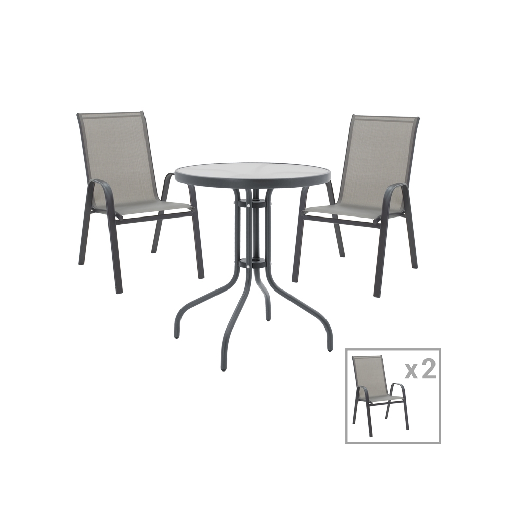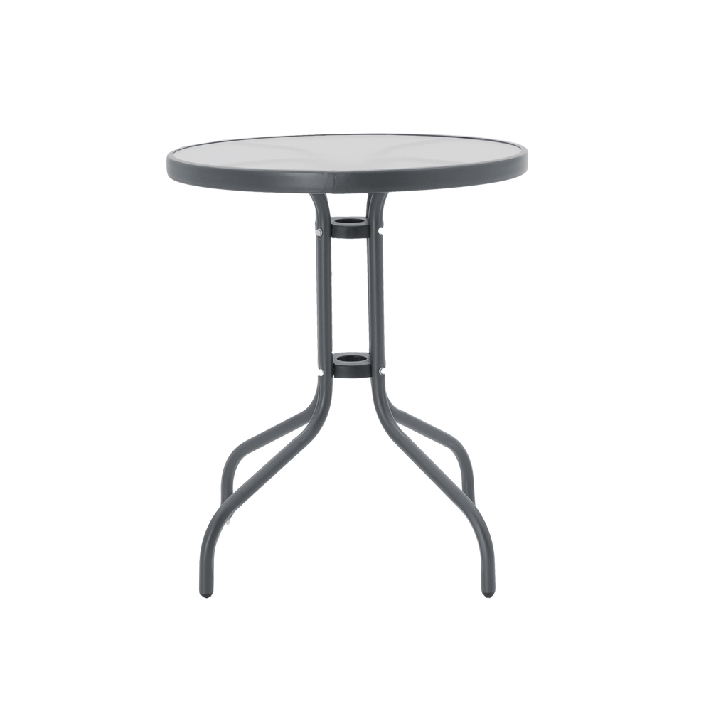 Tραπεζαρία Calan-Watson pakoworld σετ 3τεμ μέταλλο γκρι και γυαλί tempered Φ60x70εκ