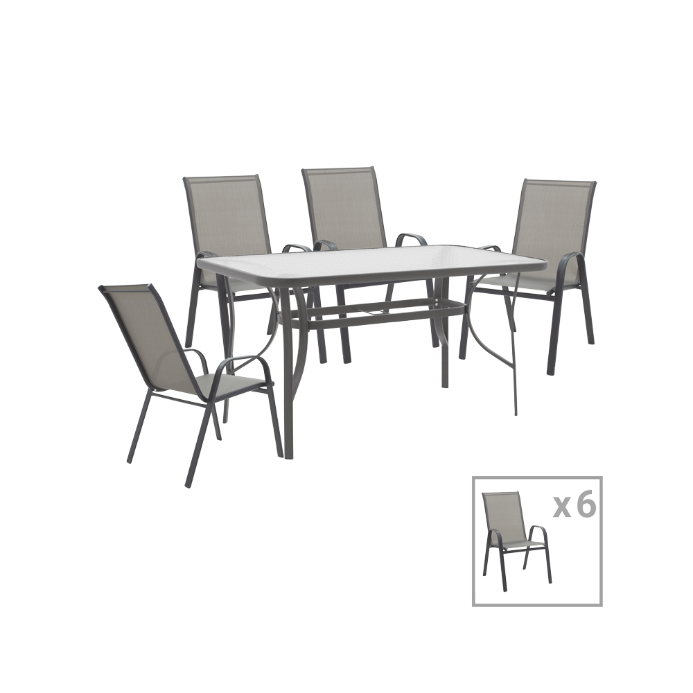 Tραπεζαρία Calan-Ensure pakoworld σετ 7τεμ σκούρο ανθρακί μέταλλο και textilene ανθρακί 140x80x70εκΘέλετε μία ανθεκτική τραπεζαρία για το μπαλκόνι ή τον κήπο σας που θα αναβαθμίσει αισθητικά το χώρο σας; Η σειρά κήπου Calan-Ensure είναι ιδανική για εσάς καθώς συνδυάζει την αισθητική με την ποιότητα κατασκευής.