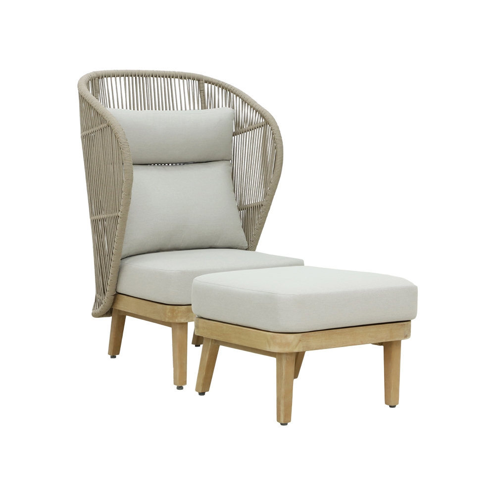 Σετ σαλονιού 2τμχ Nicholas pakoworld μασίφ ξύλο ευκαλύπτου και μπεζ ύφασμα και σχοινίΤο σετ Nicholas αποτελείται από ενα μία πολυθρόνα και ένα σκαμπό.Είναι κατασκευασμένο από ανθεκτικό φυσικό ξύλο ευκαλύπτου. Η φυσική και ισχυρή αντοχή του σε συνδυασμό και με την ομορφιά του το καθιστούν ιδανικό ξύλο για έπιπλα εξωτερικού χώρου. Μπορεί να χρησιμοποιηθεί για οικιακή και επαγγελματική χρήση.
