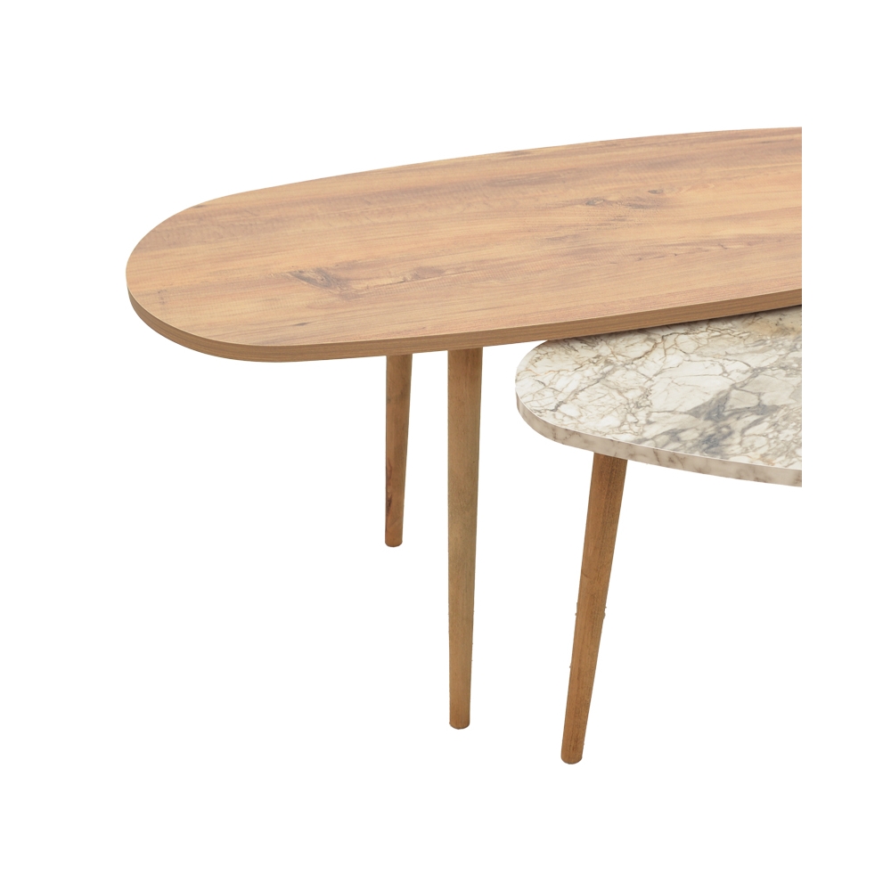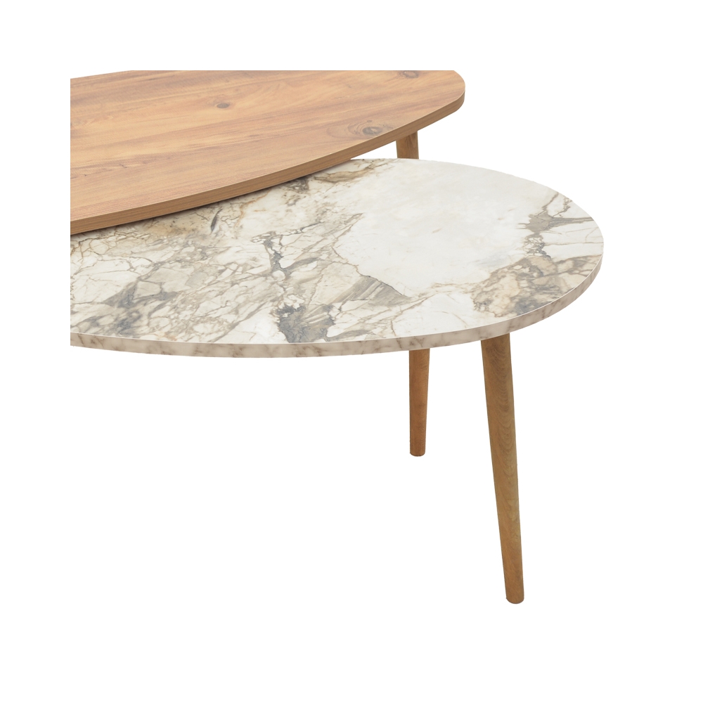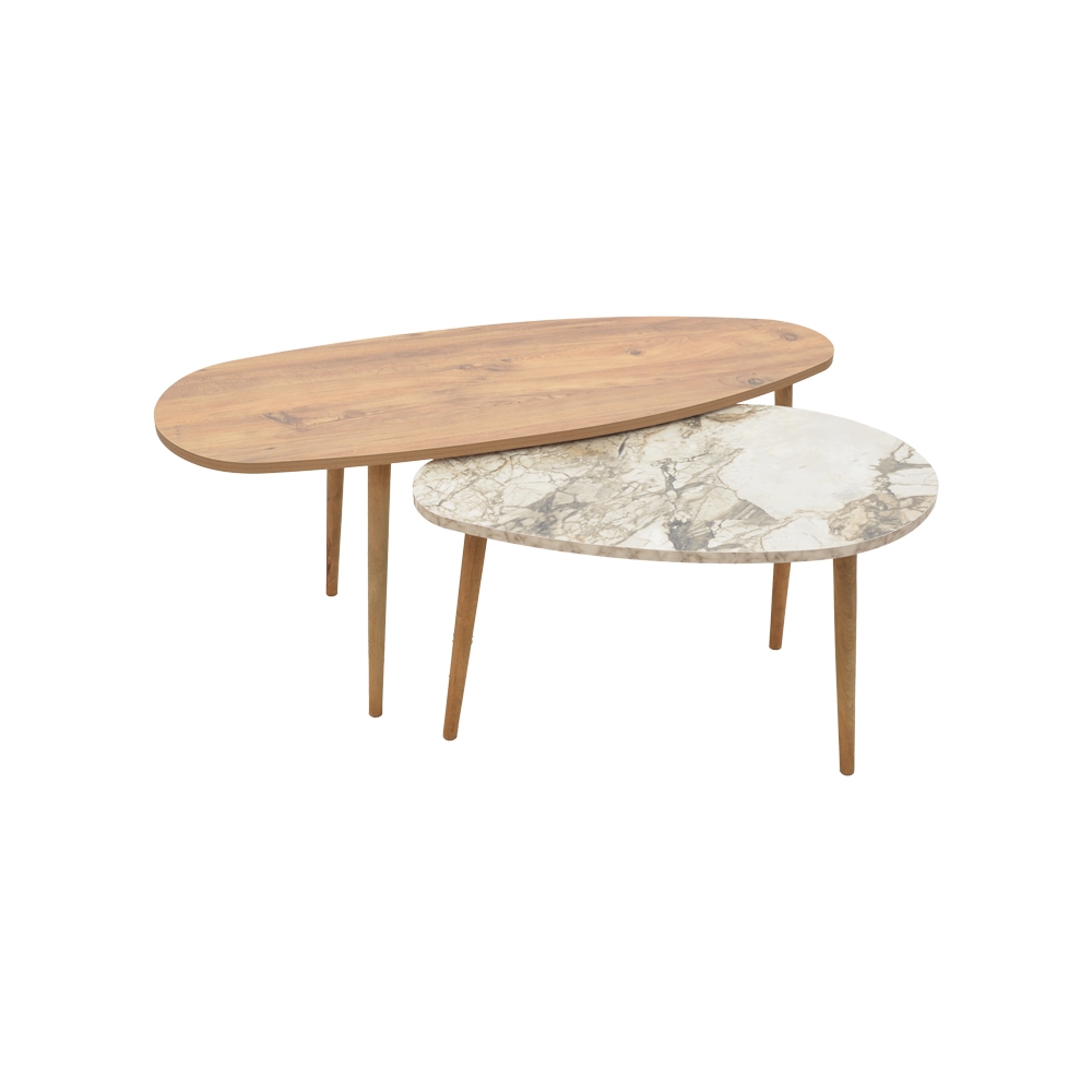 Για σένα που λατρεύεις τις καμπύλες γραμμές και αναζητάς μία μοντέρνα σύνθεση από τραπεζάκια σαλονιού, η σειρά Monty με το εντυπωσιακό σχήμα “σταγόνας” θα σε ενθουσιάσει. Τεχνικά χαρακτηριστικά: •Σταθερός σκελετός από εξαιρετικής ποιότητας μοριοσανίδα με επένδυση μελαμίνης αντοχής στη φθορά και στο χρόνο. •Προσφέρονται σε χρώμα oak-μπεζ μαρμάρου.
