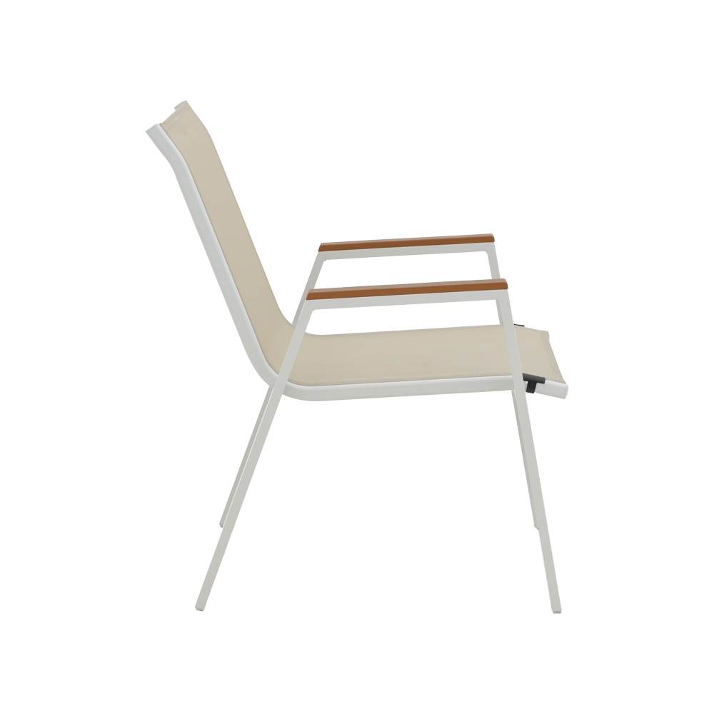 Πολυθρόνα Azelie pakoworld αλουμινίου σε απόχρωση textilene μπεζ και πόδι λευκό 77x55x94εκΜια εξαιρετική επιλογή για τον εξωτερικό σας χώρο, συνδυάζοντας την άνεση και την ανθεκτικότητα. Η πολυθρόνα κήπου Azelie σας προσφέρει άνεση στο κάθισμα αλλά και αντοχή χάρη στην εξαιρετική ποιότητα κατασκευής της. Τοποθετήστε την στο μπαλκόνι ή στον κήπο σας και συνδυάστε την αισθητική με την εργονομία.