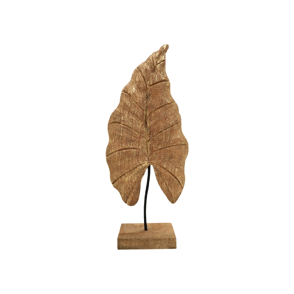 Επιτραπέζιο διακοσμητικό φύλλο Thelx Inart χρυσό μάνγκο ξύλο-μέταλλο 24.5x8.5x57.5εκ Pakoworld 312-000006
