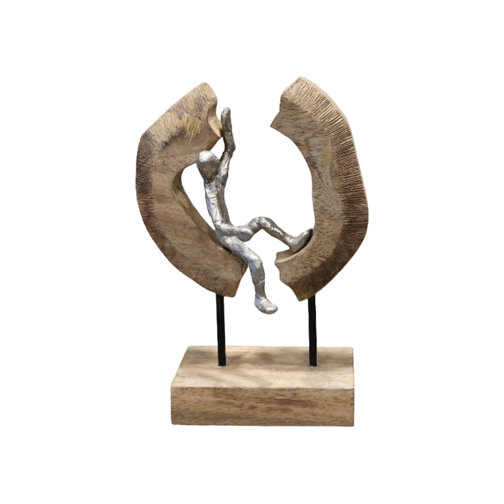 Επιτραπέζιο διακοσμητικό Vualo Inart φυσικό μάνγκο ξύλο-αλουμίνιο 18x10x26εκ Pakoworld 312-000004