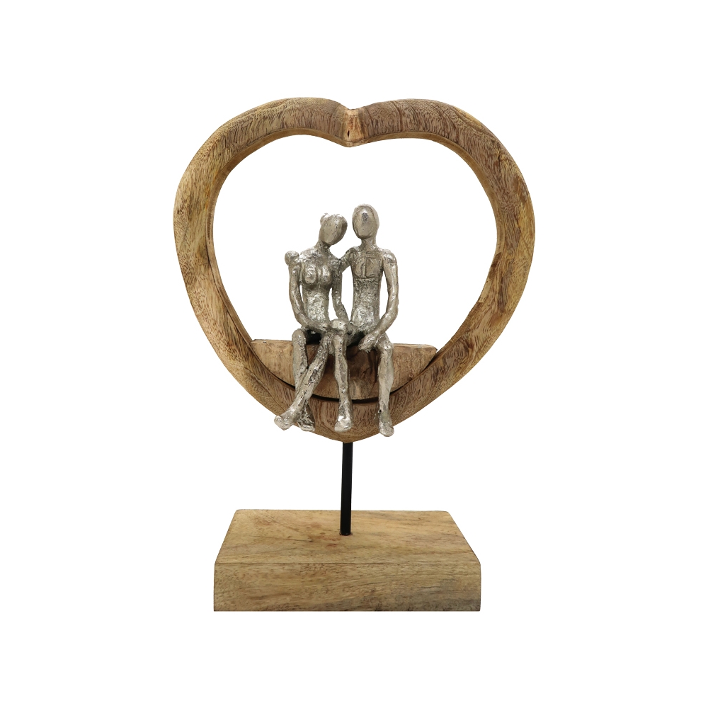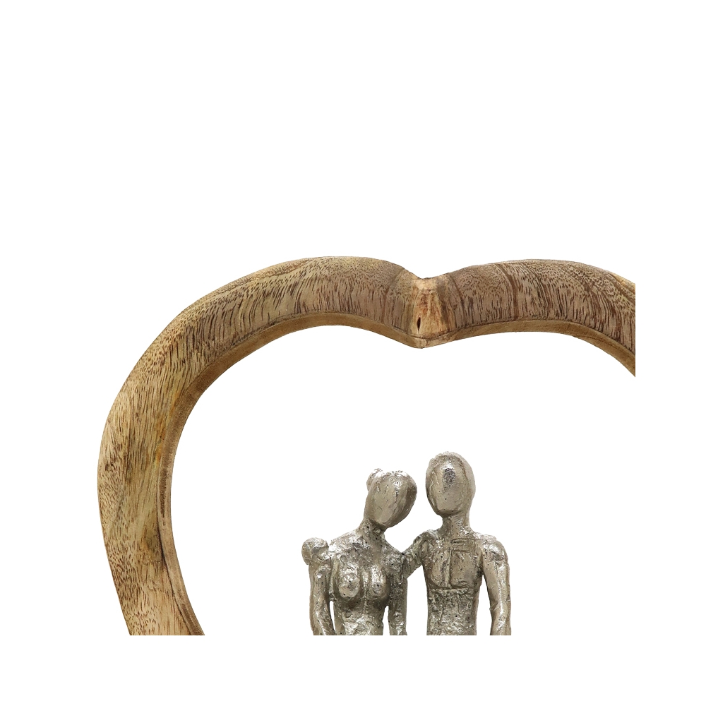 Επιτραπέζιο διακοσμητικό καρδιά Edora Inart φυσικό μάνγκο ξύλο-αλουμίνιο 27x10x36εκ Pakoworld 312-000020