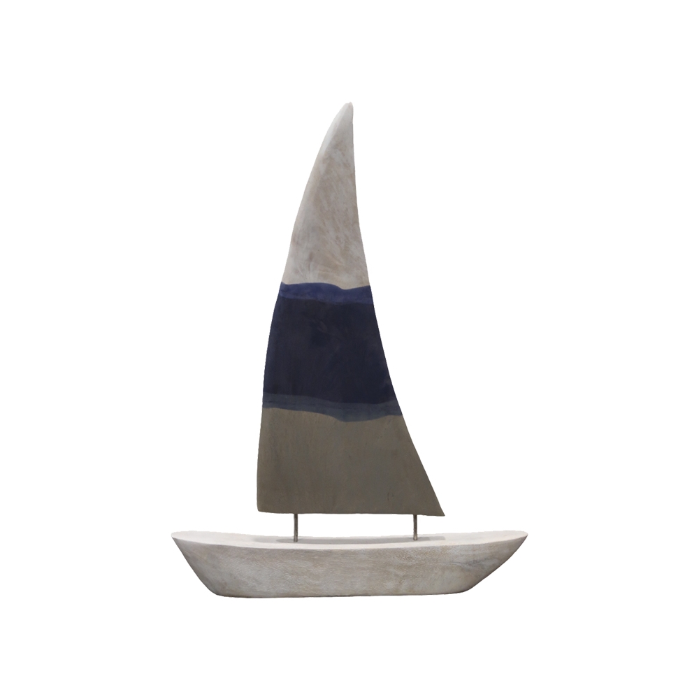 Επιτραπέζιο διακοσμητικό καράβι Elize Inart λευκό-γκρι-μπλε μάνκγο ξύλο-μέταλλο 40.5x5x57.5εκ Pakoworld 312-000049