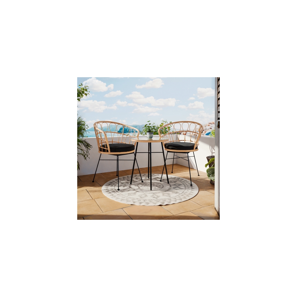 Tραπεζαρία Felicia-Gaus pakoworld σετ 3τεμ pe rattan σε φυσική απόχρωση-μαύρο μέταλλο Φ60x74εκΘέλετε μία ανθεκτική τραπεζαρία για το μπαλκόνι ή τον κήπο σας που θα αναβαθμίσει αισθητικά το χώρο σας; Η σειρά κήπου Felicia-Gaus είναι ιδανική για εσάς καθώς συνδυάζει την αισθητική με την ποιότητα κατασκευής.
