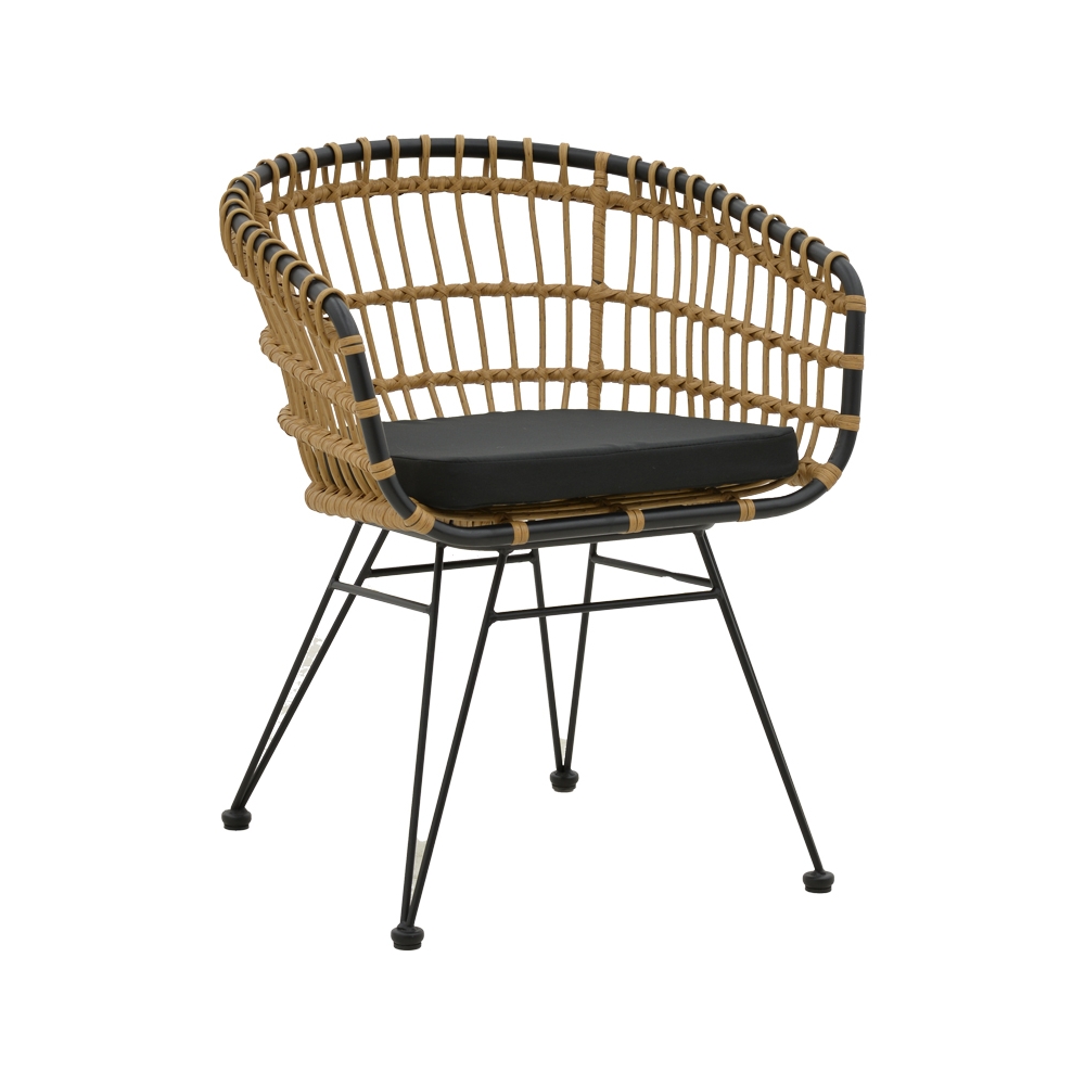- Κυρίως επιφάνεια καρέκλας από PE rattan σε φυσικό χρώμα. Το PE rattan είναι ένα είδος οικολογικού συνθετικού rattan, ανακυκλώσιμο και με μεγαλύτερη ανθεκτικότητα σε σχέση με τα άλλα είδη.