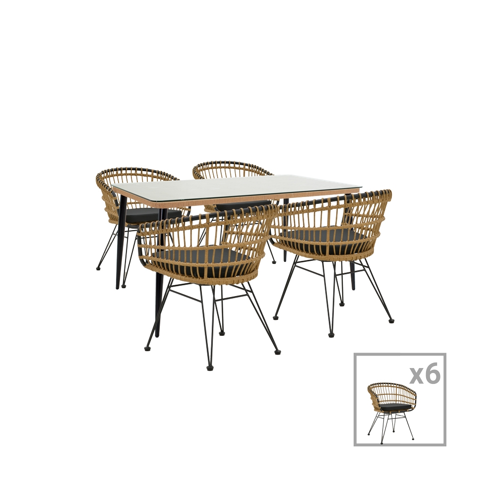 Τραπεζαρία Naoki C pakoworld σετ 7 τμχ rattan φυσικό-μαύρο μέταλλο-γυαλί 160x90x78εκΘέλετε ένα ανθεκτικό σετ τραπεζαρίας για το μπαλκόνι ή τον κήπο σας που θα αναβαθμίσει αισθητικά το χώρο σας; Η σειρά Naoki είναι ιδανική για εσάς καθώς συνδυάζει την αισθητική με την ποιότητα κατασκευής.