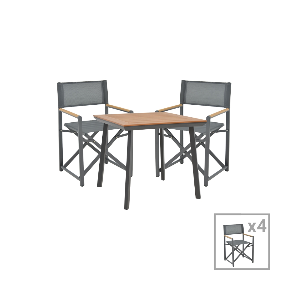Τραπεζαρία Mabu-Synergy σετ 5τεμ pakoworld ανθρακί αλουμίνιο και plywood σε φυσικό χρώμα 80x80x74εκΑναζητάτε μία ανθεκτική τραπεζαρία για το μπαλκόνι ή τον κήπο σας που θα αναβαθμίσει αισθητικά το χώρο σας; Τότε η επιλογή της Mabu-Synergy είναι ιδανική για εσάς καθώς συνδυάζει την αισθητική με την ποιότητα κατασκευής.