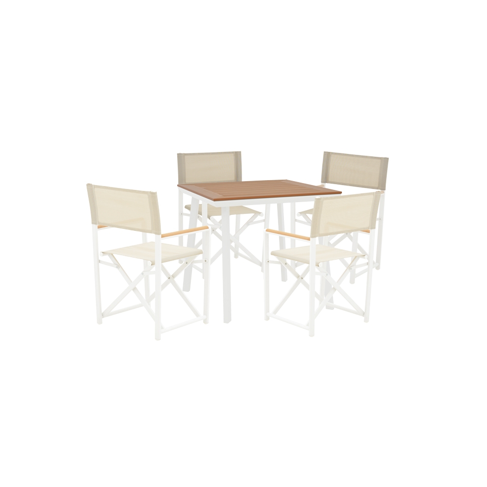 Τραπεζαρία Mabu-Synergy σετ 5τεμ pakoworld λευκό αλουμίνιο και plywood σε φυσικό χρώμα 80x80x74εκ