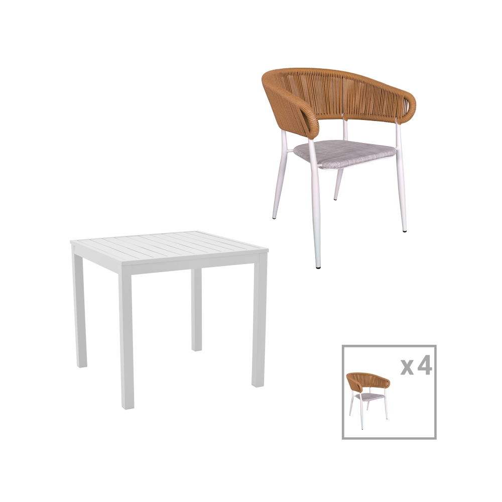 Το σετ αποτελείται από τέσσερις πολυθρόνες και ένα τραπέζι.