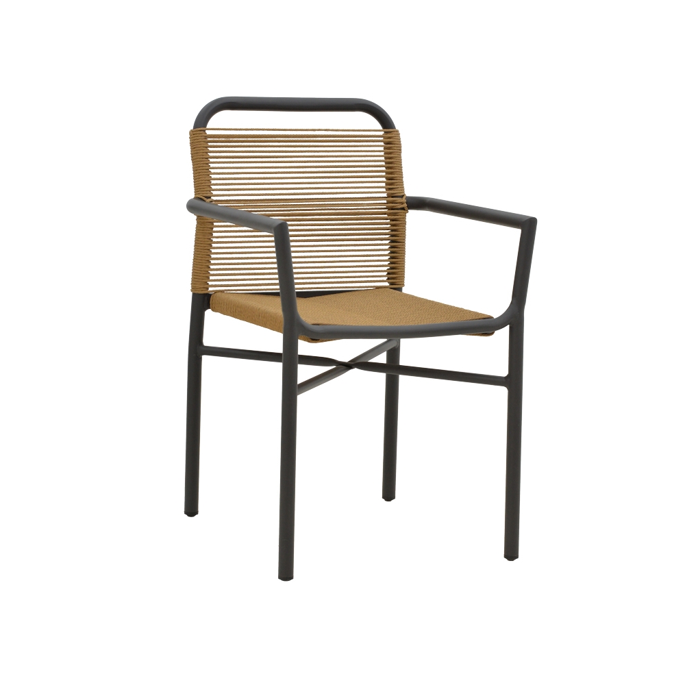- Κυρίως σώμα καρέκλας από ρατάν. Η κύρια ιδιότητα του ράταν είναι η ευελιξία του, καθώς μπορεί να πλεκτεί και να διαμορφωθεί εύκολα. Επίσης, είναι ανθεκτικό και αντέχει στις καιρικές συνθήκες, καθιστώντας το ιδανικό για επιπλέον εξωτερικούς χώρους.
