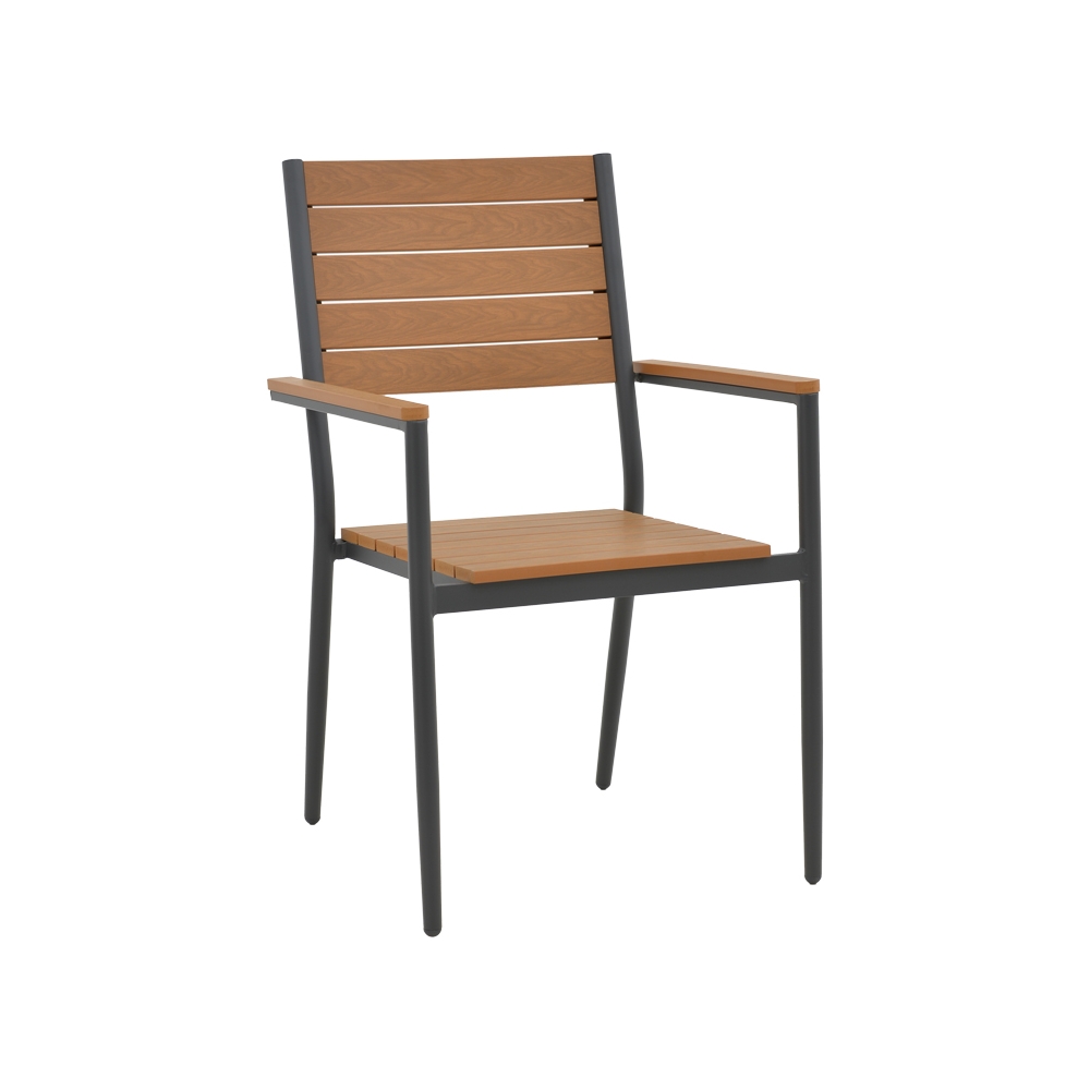 - Κυρίως επιφάνεια πολυθρόνας από υψηλής ποιότητας plywood - κόντρα πλακέ που προσδίδει ανθεκτικότητα αλλά και αντοχή στις συνθήκες του εξωτερικού περιβάλλοντος (ηλιακή ακτινοβολία, υγρασία). Το plywood είναι ένα σύνθετο υλικό που μοιάζει με ξύλο, κατασκευασμένο από ανακυκλωμένα πλαστικά. Χρησιμοποιείται συνήθως για την κατασκευή εξωτερικών επίπλων, όπως τραπέζια, καρέκλες, ξαπλώστρες και παγκάκια. Είναι εξαιρετικά ανθεκτικό στις καιρικές συνθήκες.
