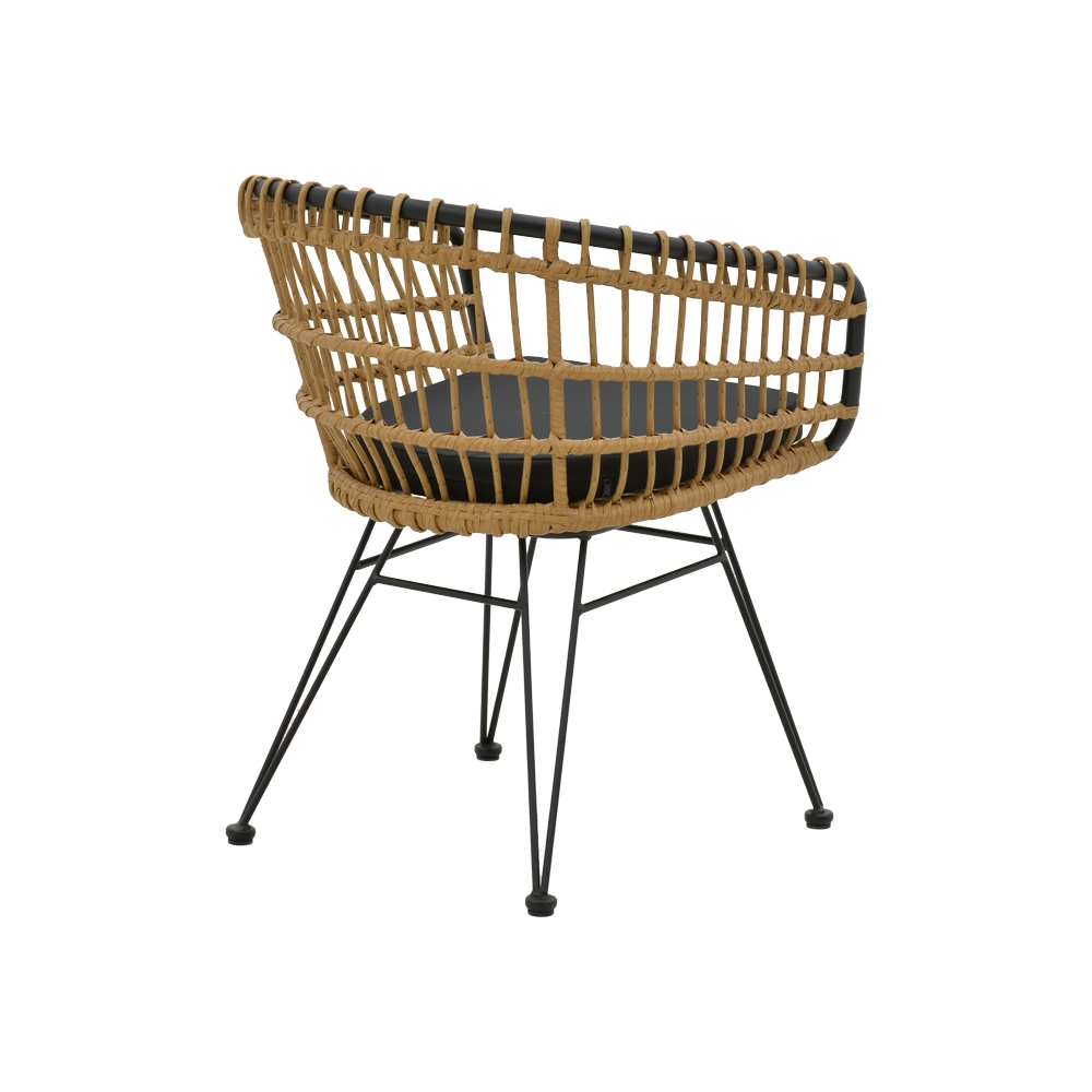 - Κυρίως επιφάνεια καρέκλας από PE rattan σε φυσικό χρώμα. Το PE rattan είναι ένα είδος οικολογικού συνθετικού rattan, ανακυκλώσιμο και με μεγαλύτερη ανθεκτικότητα σε σχέση με τα άλλα είδη.