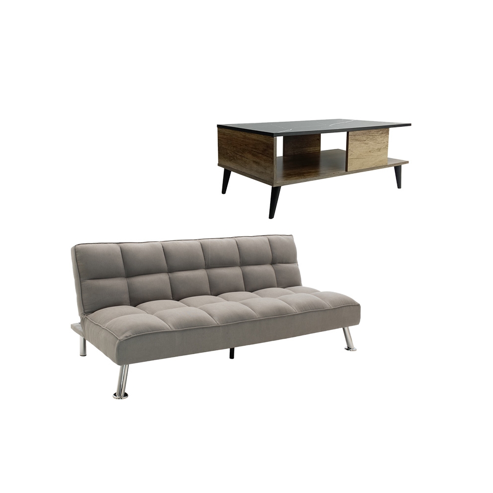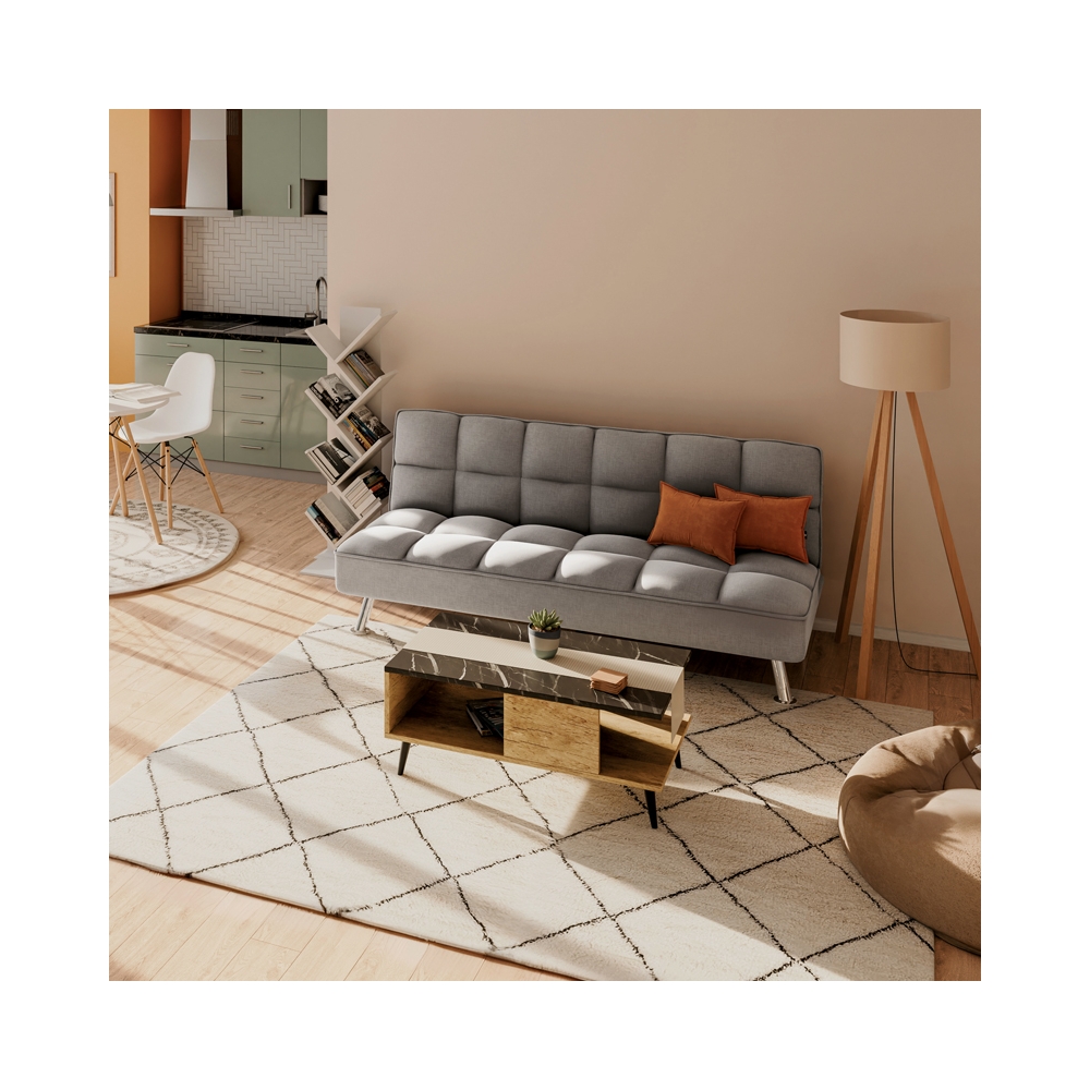 - Φέρει εύχρηστο μεταλλικό μηχανισμό «click-clack» που με μία μόνο κίνηση μετατρέπει τον καναπέ σε κρεβάτι και το αντίστροφο.