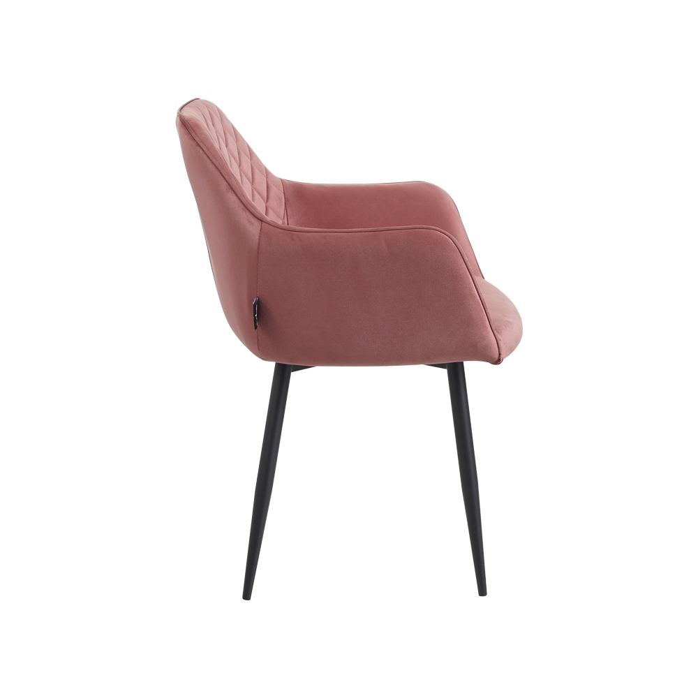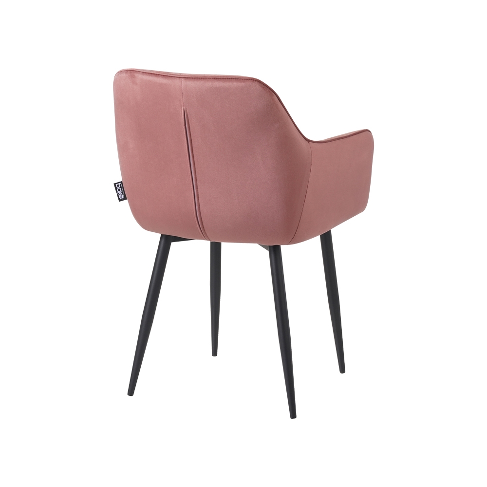 Τεχνικά χαρακτηριστικά: *Πλάτη και έδρα ενιαία, με επένδυση βελούδο υφάσματα άριστης ποιότητας με μεγάλη ανθεκτικότητα και αντοχή στη φθορά. Το βελούδο είναι ένα ύφασμα με κοντές, πυκνές ίνες, συνήθως από μετάξι, βαμβάκι ή συνθετικά υλικά. Έχει μια απαλή, λεία υφή και μια πλούσια, γυαλιστερή εμφάνιση. Χαρακτηρίζεται για την πυκνότητα του και την απαλότητά του. *Ο σχεδιασμός της ακολουθεί την σπονδυλική στήλη, στηρίζοντας τη μέση με την μοντέρνα καμπύλη μορφή της. *Στήριξη σε ενισχυμένο σκελετό που καταλήγει σε τέσσερα μεταλλικά πόδια εξαιρετικής ποιότητας και αντοχής, στο βάρος και στο χρόνο. *Προσφέρεται σε χρώμα σάπιο μήλο-μαύρο.