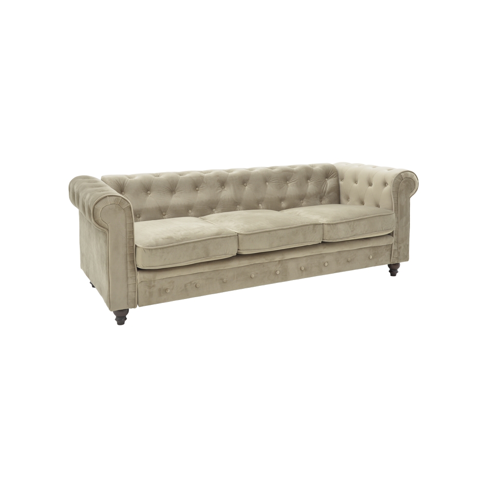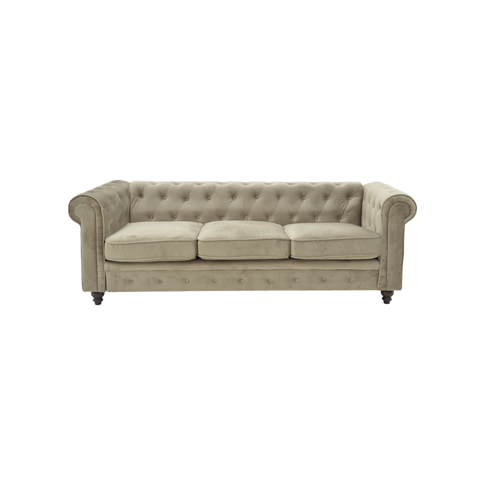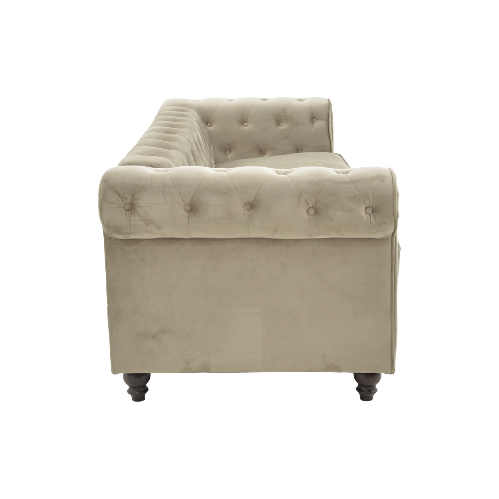 Τεχνικά χαρακτηριστικά: * Κατασκευή από foam. Ο αφρός παρέχει μαλακότητα και άνεση όταν καθίσετε στον καναπέ και είναι ανθεκτικός, επομένως διατηρεί την μορφή του με την πάροδο του χρόνου. * Επενδυμένο 100% με βελούδο ύφασμα ασυναγώνιστης ποιότητας, που παρέχει ανθεκτικότητα στον χρόνο. * Στήριξη σε ενισχυμένα ξύλινα πόδια μεγάλης αντοχής. * Προσφέρεται σε χρώμα μπεζ.