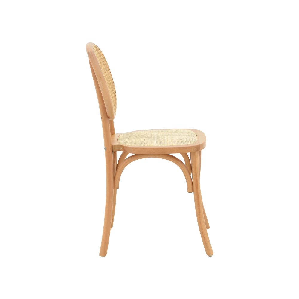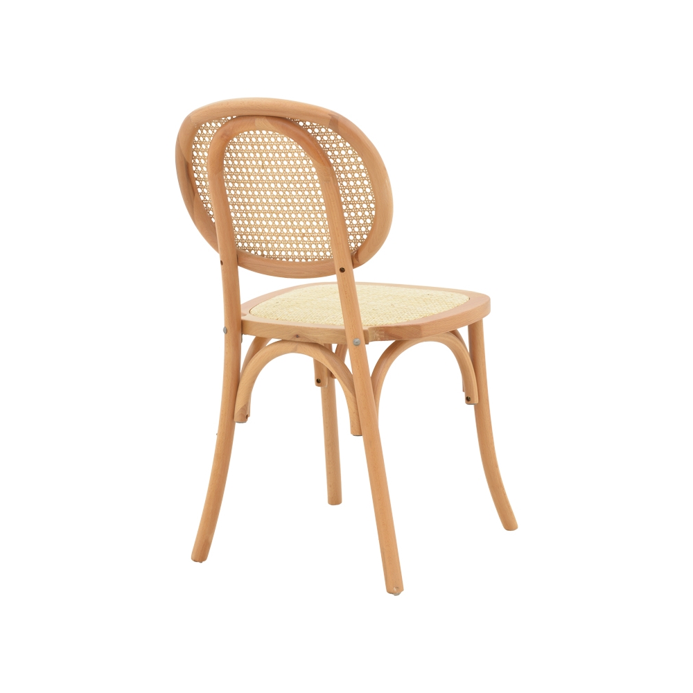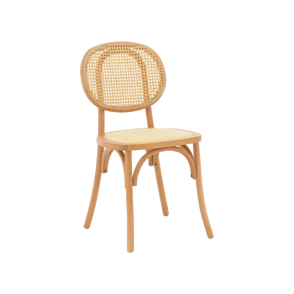 Τεχνικά χαρακτηριστικά: •Κατασκευασμένη από ξύλο οξιάς εξαιρετικής ποιότητας και αντοχής σε μαύρο χρώμα. Τ • Έδρα και πλάτη κατασκευασμένα από rattan μεγάλης αντοχής σε φθορά και χρόνο. • Οι καταλήξεις των ποδιών διαθέτουν προστατευτικά πλαστικά καλύμματα για την προστασία του πατώματος από ανεπιθύμητες φθορές. • Προσφέρεται σε χρώμα φυσικό