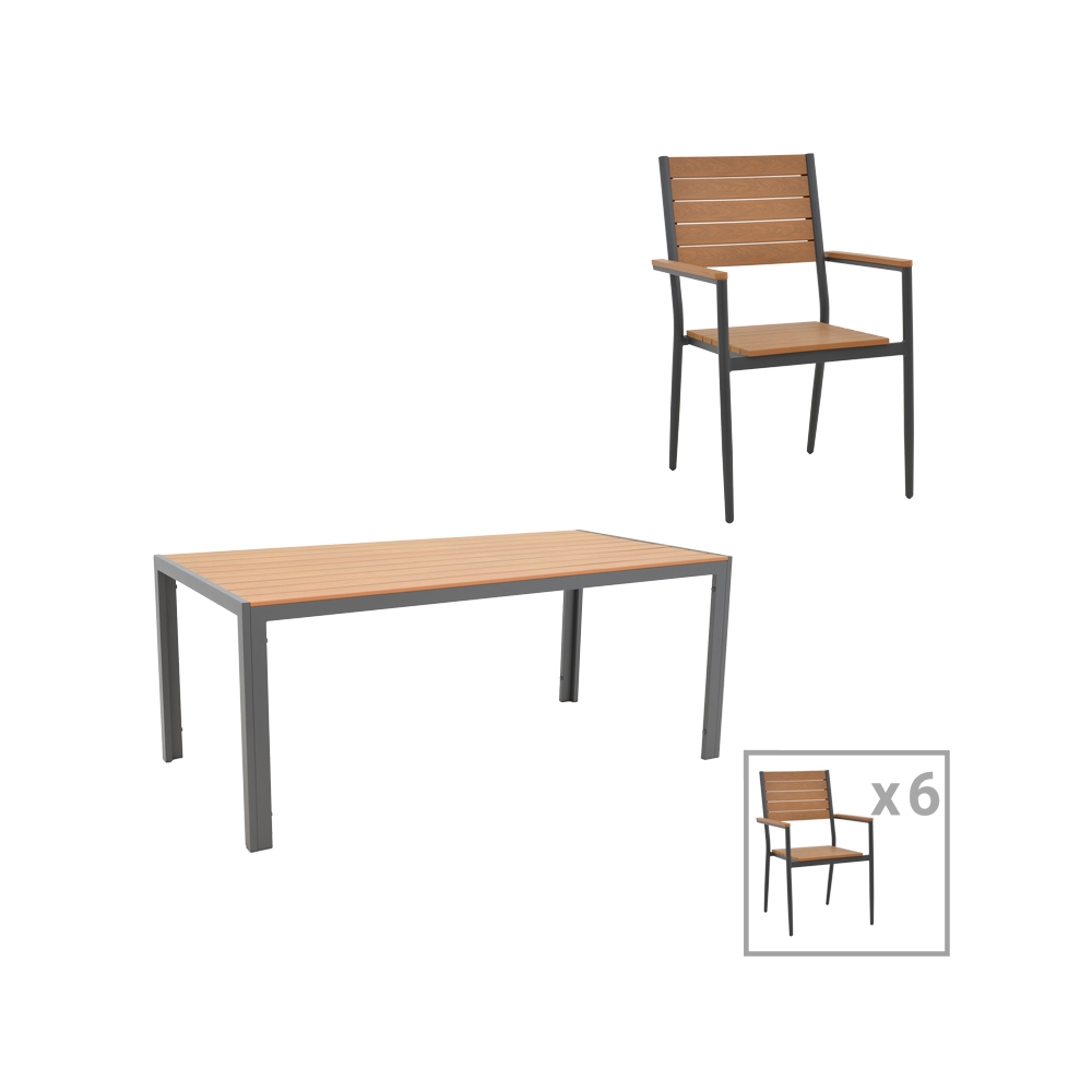 To σετ περιλαμβάνει έξι πολυθρόνες και ένα τραπέζι.Τεχνικά χαρακτηριστικά τραπεζιού: