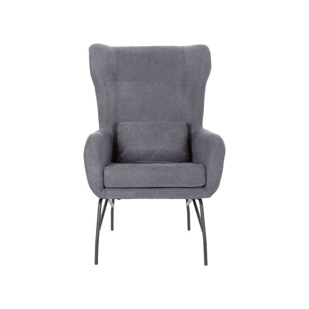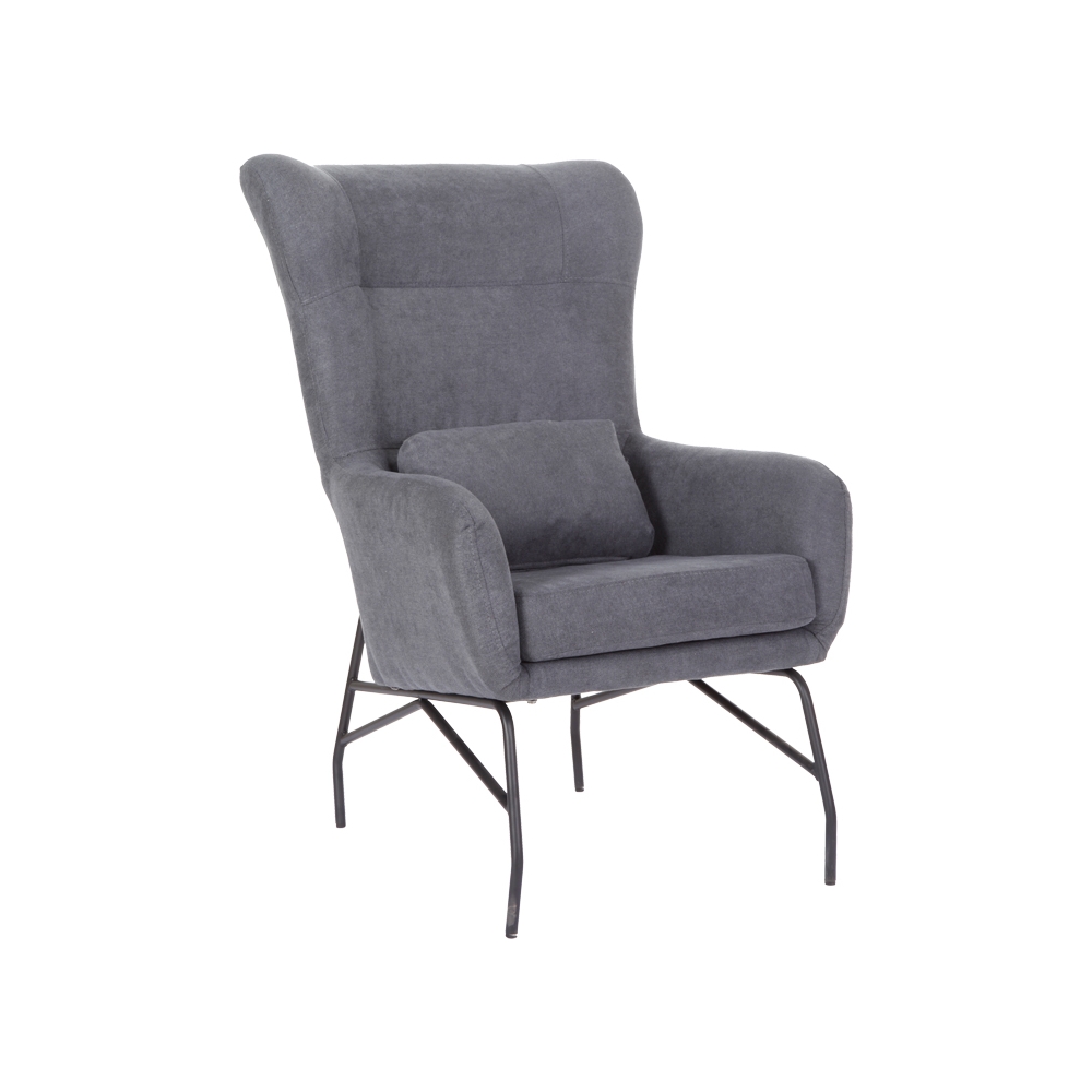 Μία πολυθρόνα μπερζέρα με διαχρονική πολυτέλεια, φτιαγμένη από μεταλλικό σκελετό και επενδυμένη από  ύφασμα υψηλής ποιότητας σε  χρώμα γκρι. Απολαύστε στιγμές χαλάρωσης σε μια εντυπωσιακή  κατασκευή. Μπορεί να χρησιμοποιηθεί για οικιακή και επαγγελματική χρήση.