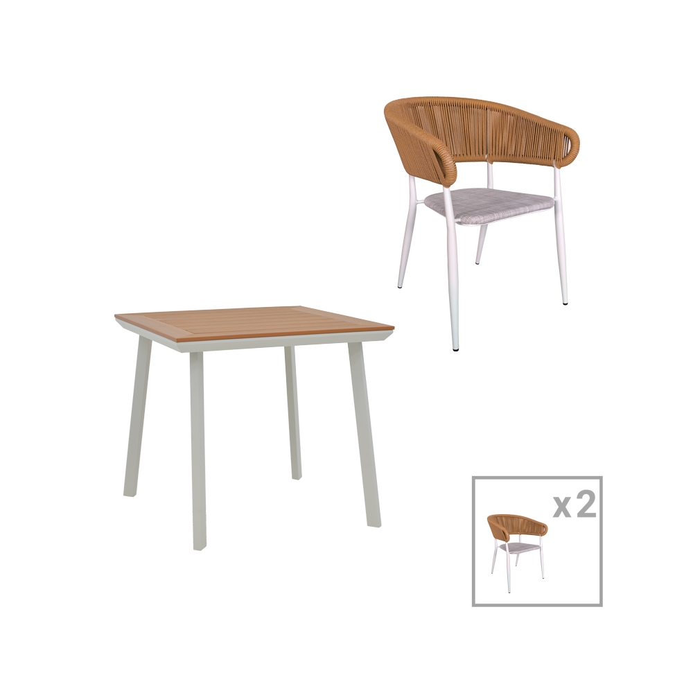 To σετ περιλαμβάνει δύο πολυθρόνες και ένα τραπέζι.