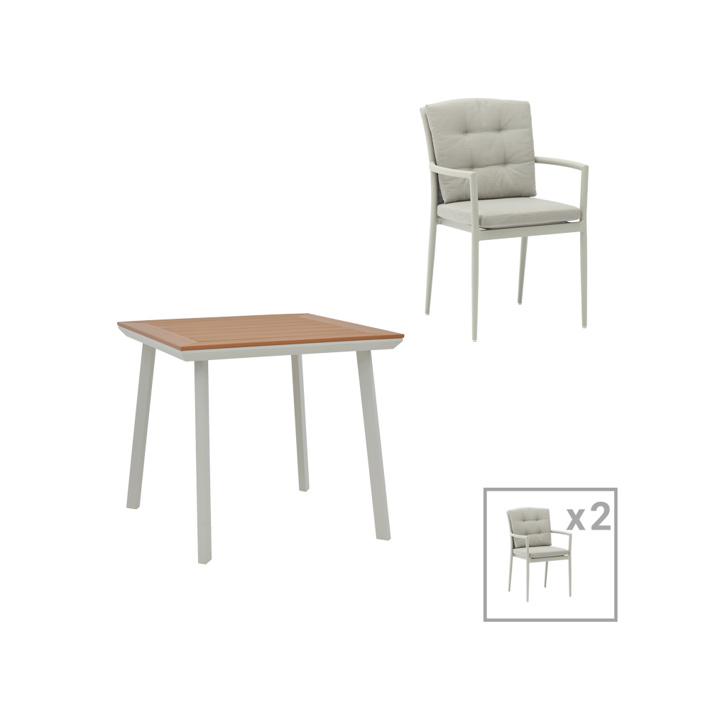 To σετ περιλαμβάνει δύο πολυθρόνες και ένα τραπέζι.