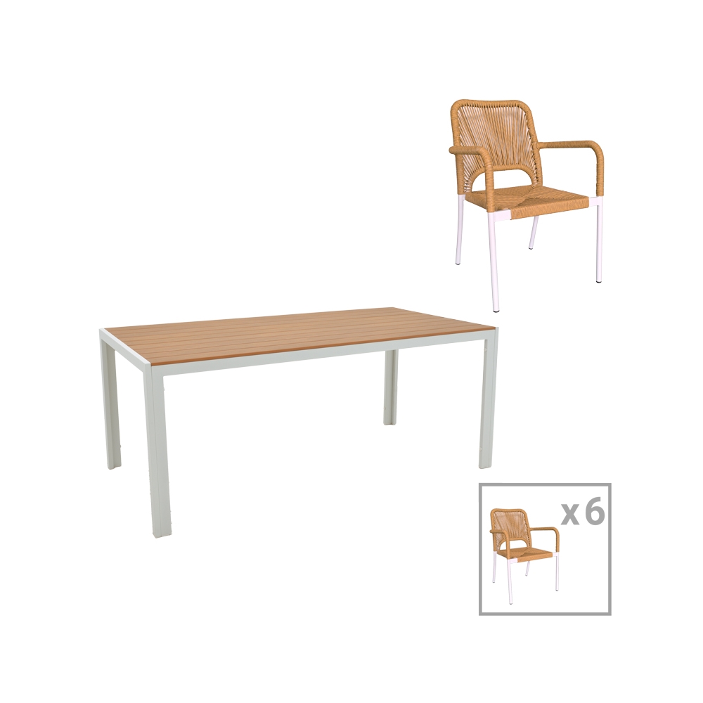 To σετ περιλαμβάνει έξι πολυθρόνες και ένα τραπέζι.