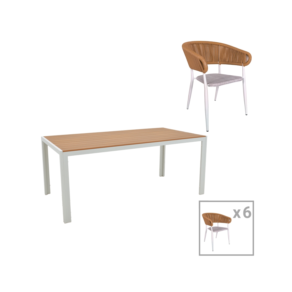 To σετ περιλαμβάνει έξι πολυθρόνες και ένα τραπέζι.
