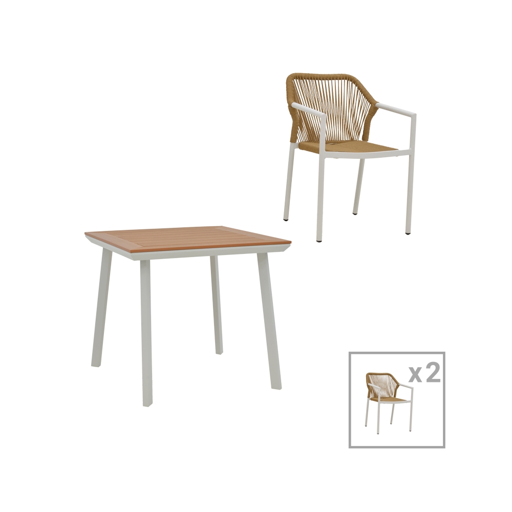 To σετ περιλαμβάνει δύο πολυθρόνες και ένα τραπέζι.