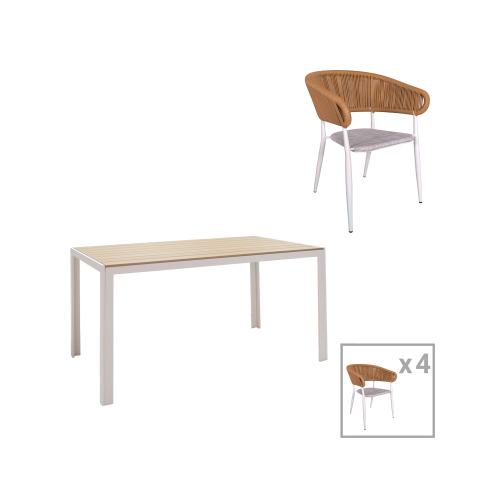 To σετ περιλαμβάνει τέσσερις πολυθρόνες και ένα τραπέζι.