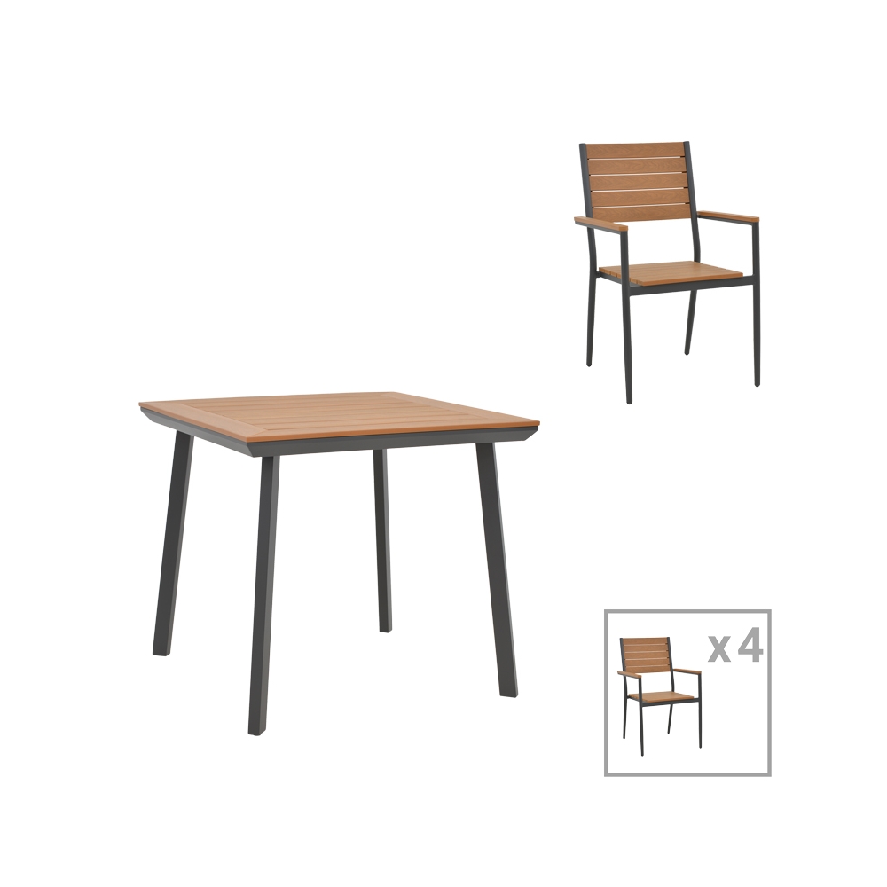 To σετ περιλαμβάνει τέσσερις πολυθρόνες και ένα τραπέζι.Τεχνικά χαρακτηριστικά τραπεζιού: