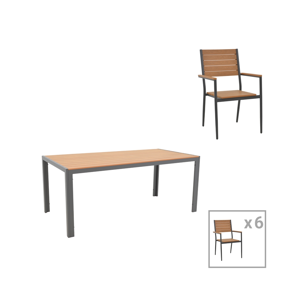 To σετ περιλαμβάνει έξι πολυθρόνες και ένα τραπέζι.Τεχνικά χαρακτηριστικά τραπεζιού: