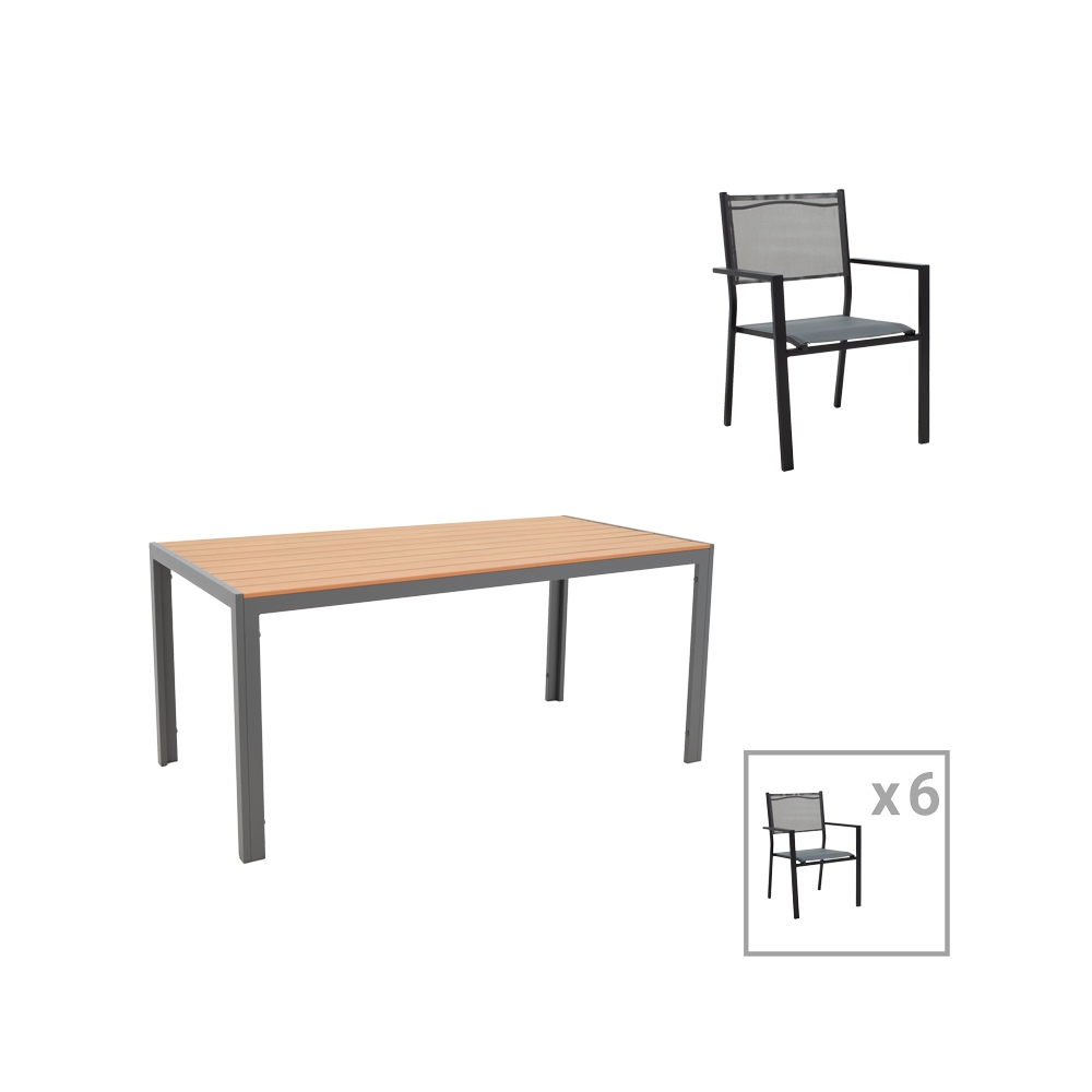To σετ περιλαμβάνει έξι πολυθρόνες και ένα τραπέζι.